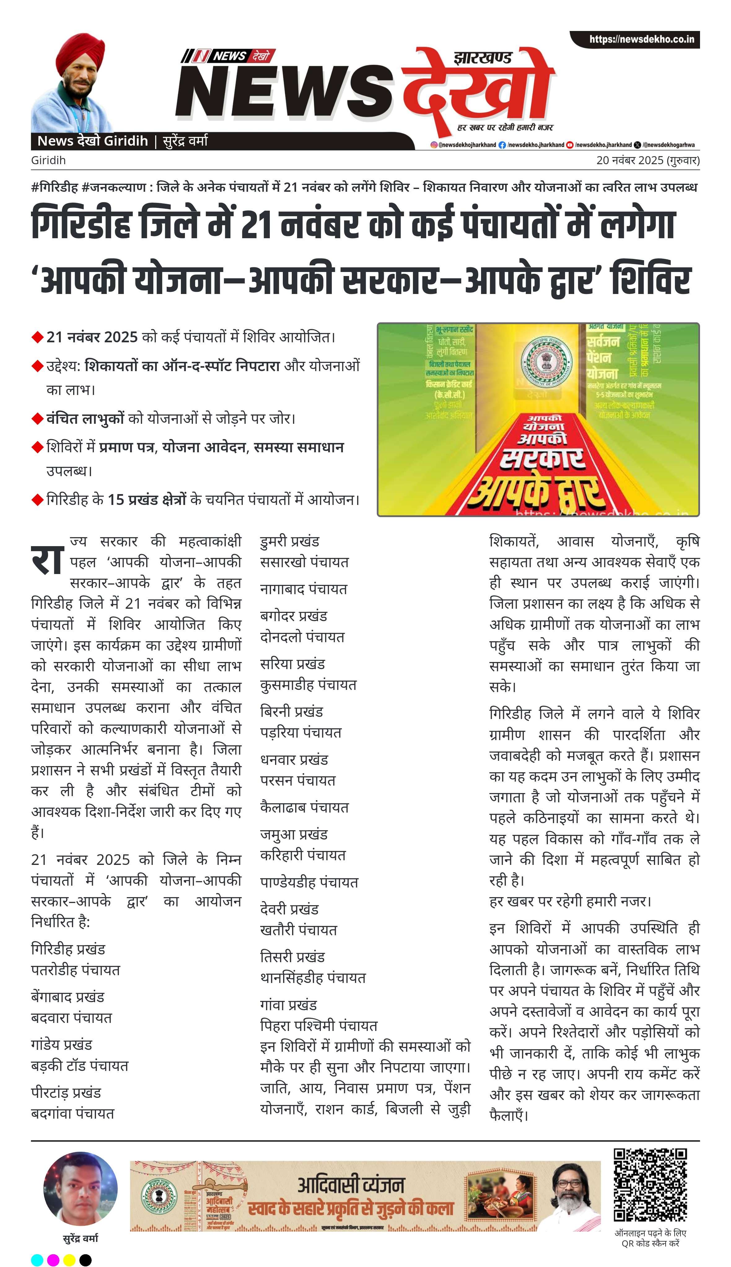 #गिरिडीह #जनकल्याण : जिले के अनेक पंचायतों में 21 नवंबर को लगेंगे शिविर – शिकायत निवारण और योजनाओं का त्वरित लाभ उपलब्ध