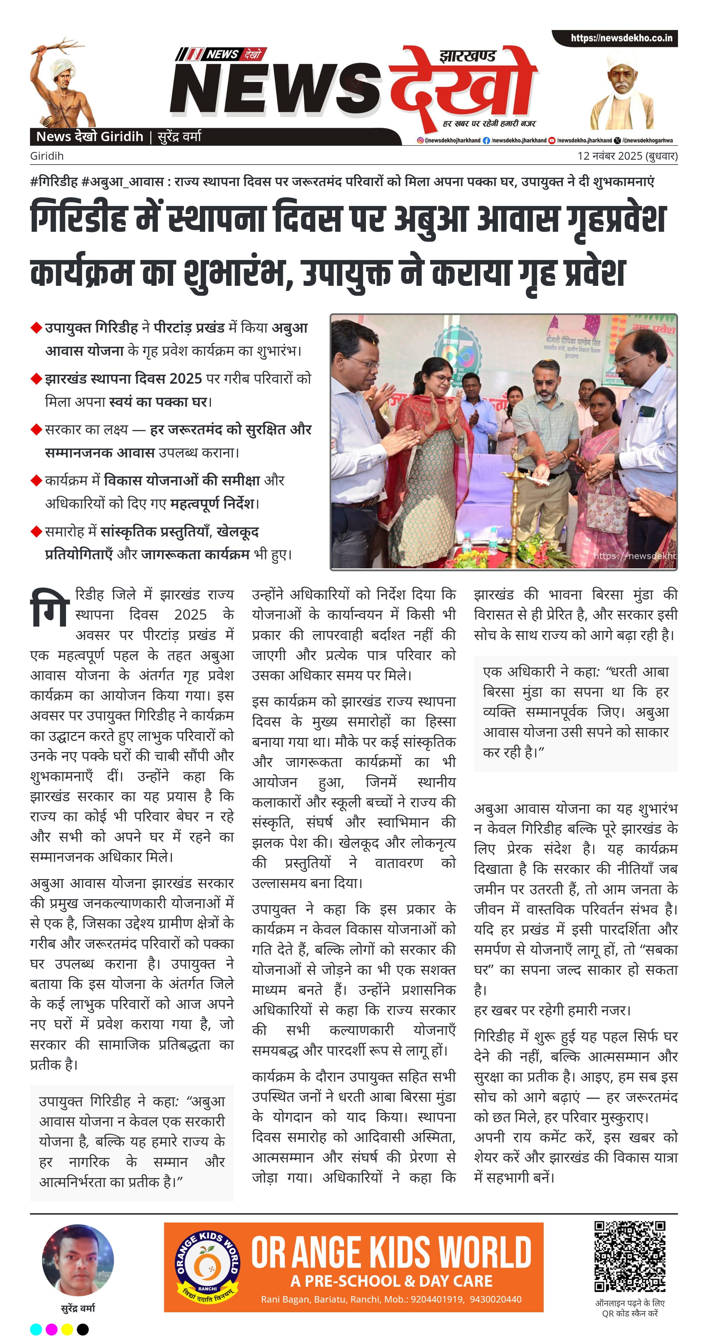 अबुआ आवास योजना का यह शुभारंभ न केवल गिरिडीह बल्कि पूरे झारखंड के लिए प्रेरक संदेश है। यह कार्यक्रम दिखाता है कि सरकार की नीतियाँ जब जमीन पर उतरती हैं, तो आम जनता के जीवन में वास्तविक परिवर्तन संभव है। यदि हर प्रखंड में इसी पारदर्शिता और समर्पण से योजनाएँ लागू हों, तो “सबका घर” का सपना जल्द साकार हो सकता है।