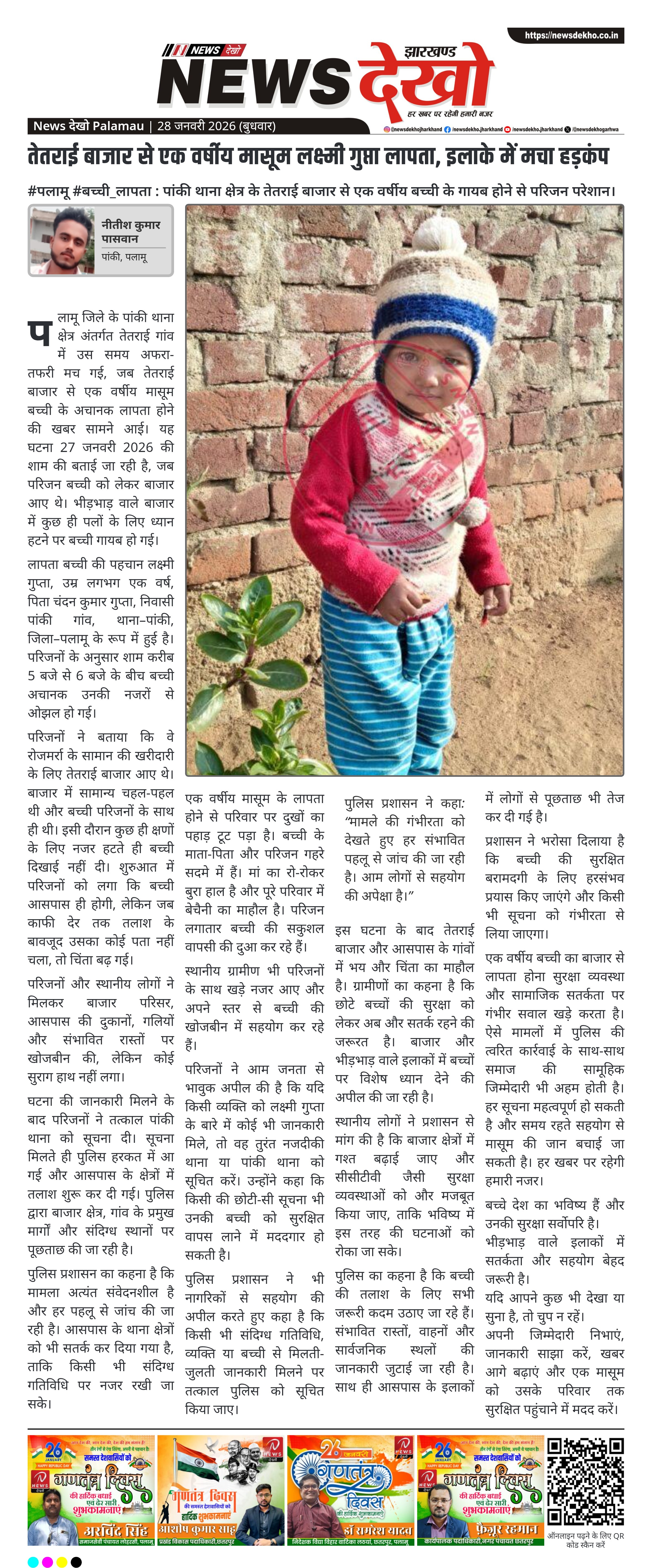 - लापता बच्ची का नाम लक्ष्मी गुप्ता, उम्र लगभग 1 वर्ष।