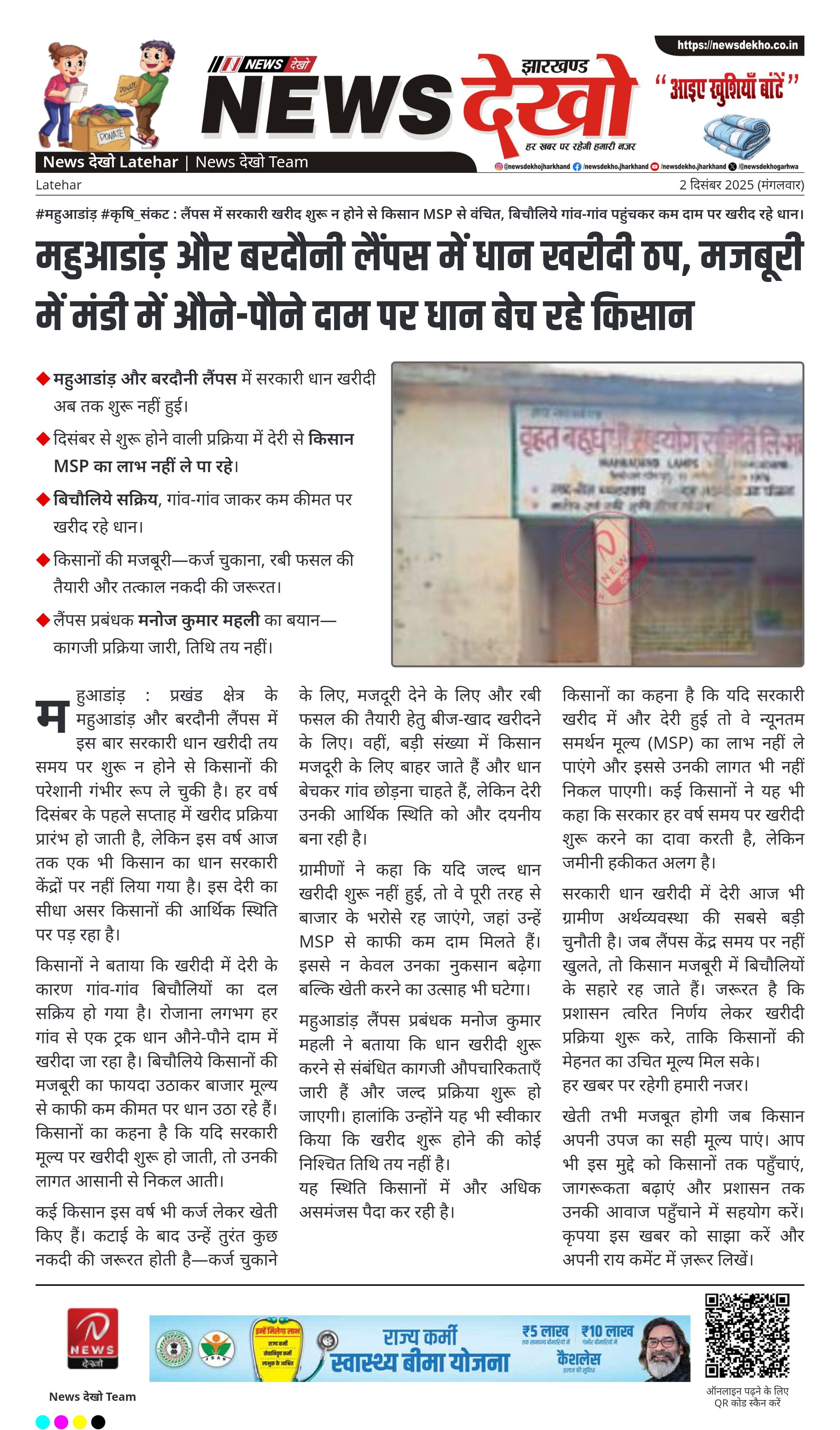 • महुआडांड़ और बरदौनी लैंपस में सरकारी धान खरीदी अब तक शुरू नहीं हुई।