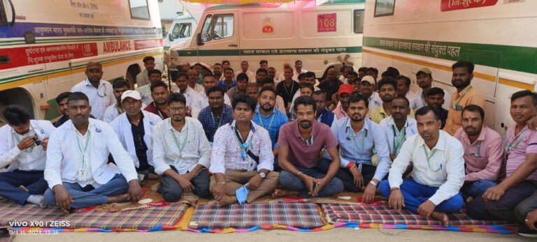 एंबुलेंस कर्मियों की हड़ताल से मरीजों की बढ़ी परेशानी, तीन महीने का वेतन और भविष्य निधि की मांग