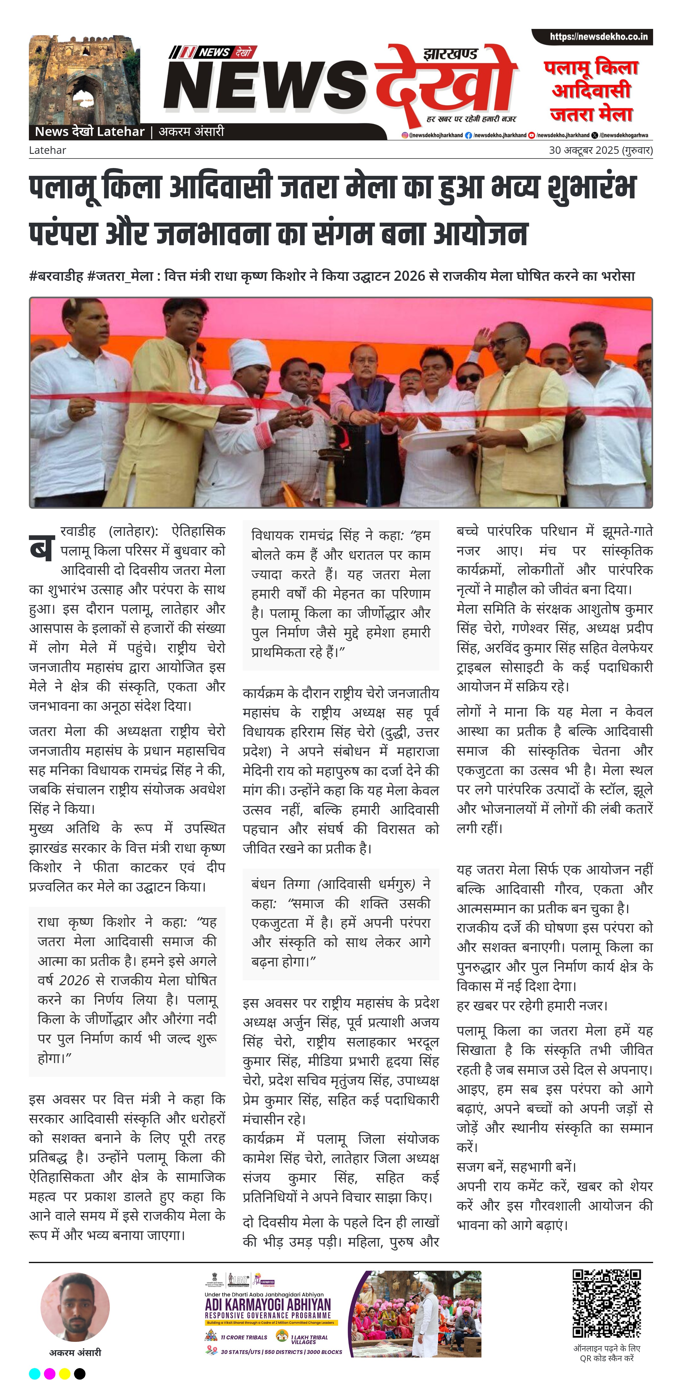 राधा कृष्ण किशोर ने कहा: “यह जतरा मेला आदिवासी समाज की आत्मा का प्रतीक है। हमने इसे अगले वर्ष 2026 से राजकीय मेला घोषित करने का निर्णय लिया है। पलामू किला के जीर्णोद्धार और औरंगा नदी पर पुल निर्माण कार्य भी जल्द शुरू होगा।”