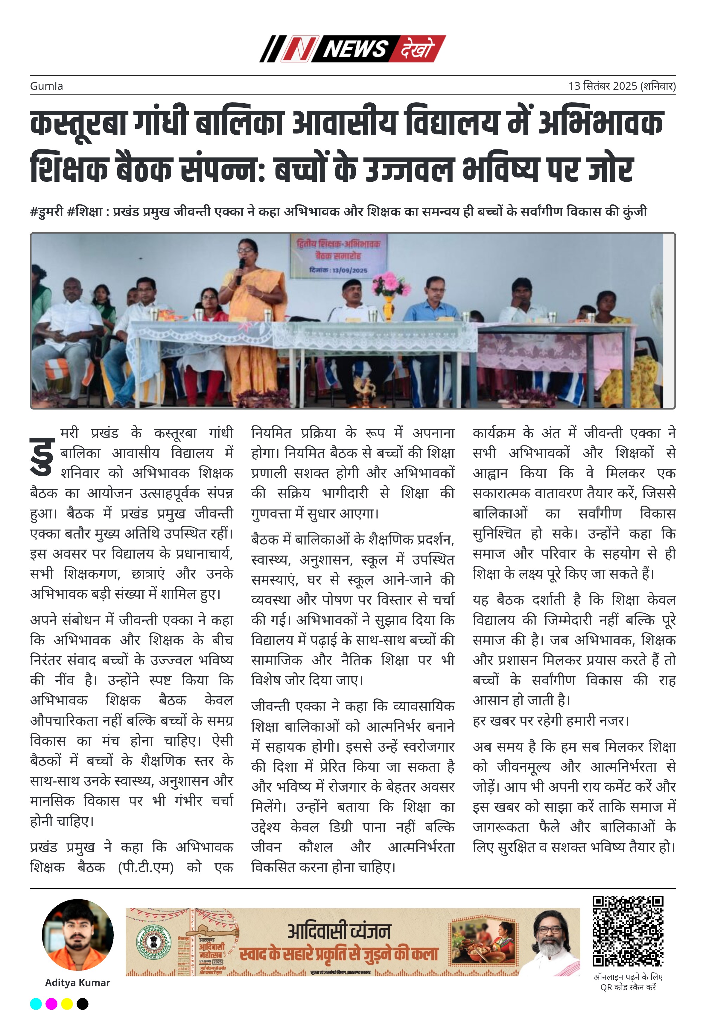 कार्यक्रम के अंत में जीवन्ती एक्का ने सभी अभिभावकों और शिक्षकों से आह्वान किया कि वे मिलकर एक सकारात्मक वातावरण तैयार करें, जिससे बालिकाओं का सर्वांगीण विकास सुनिश्चित हो सके। उन्होंने कहा कि समाज और परिवार के सहयोग से ही शिक्षा के लक्ष्य पूरे किए जा सकते हैं।