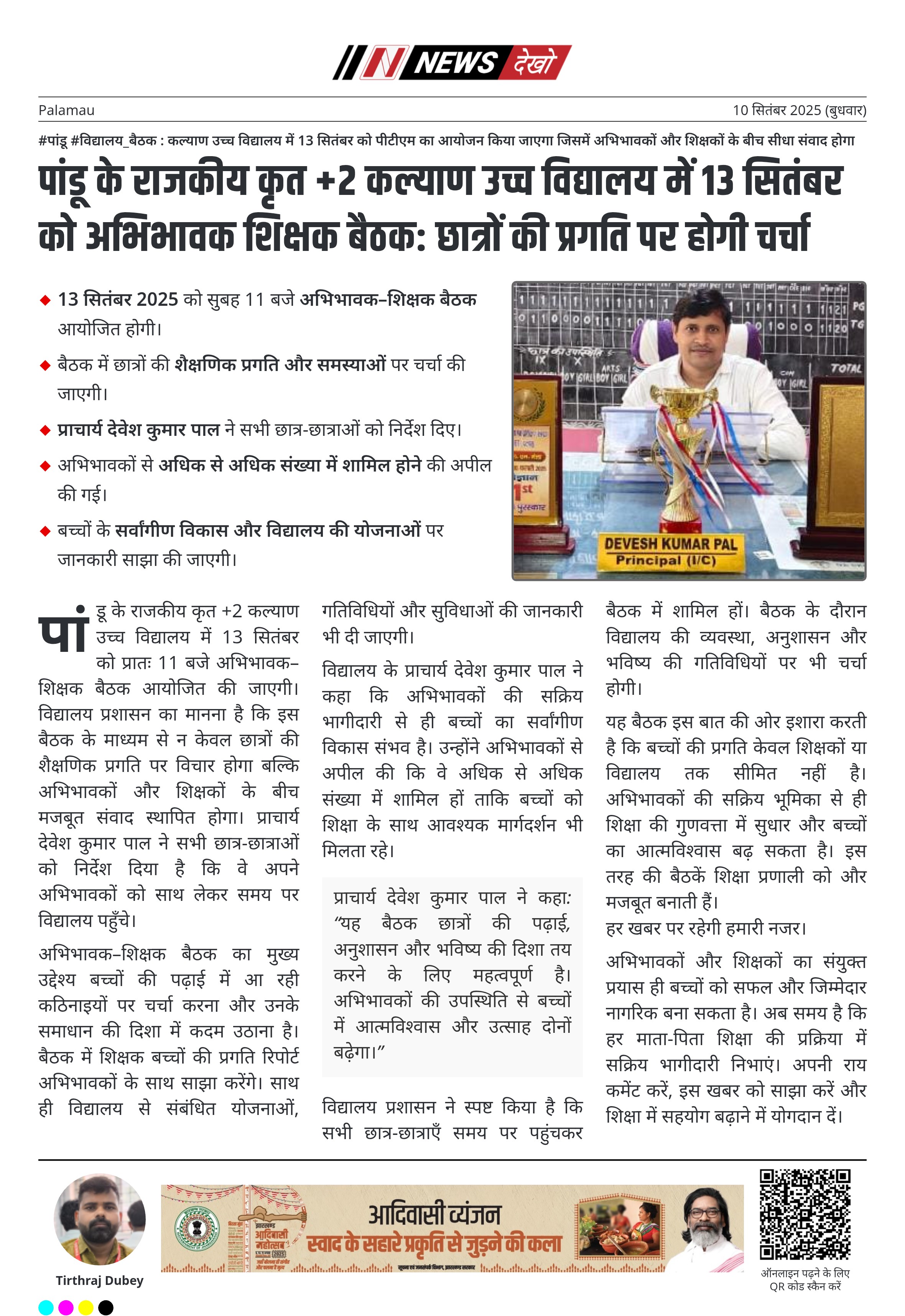 #पांडू #विद्यालय_बैठक : कल्याण उच्च विद्यालय में 13 सितंबर को पीटीएम का आयोजन किया जाएगा जिसमें अभिभावकों और शिक्षकों के बीच सीधा संवाद होगा