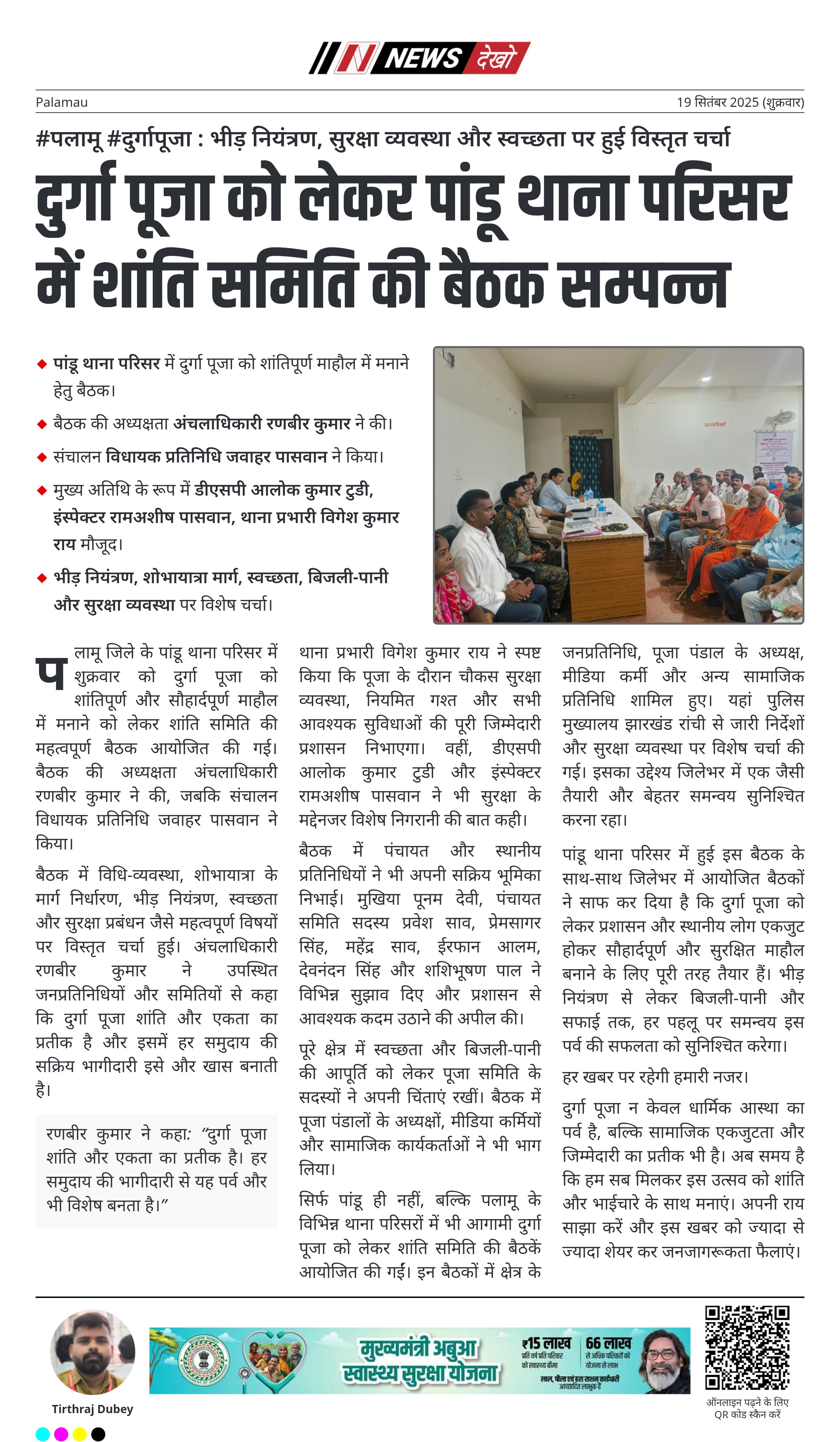 #पलामू #दुर्गापूजा : भीड़ नियंत्रण, सुरक्षा व्यवस्था और स्वच्छता पर हुई विस्तृत चर्चा