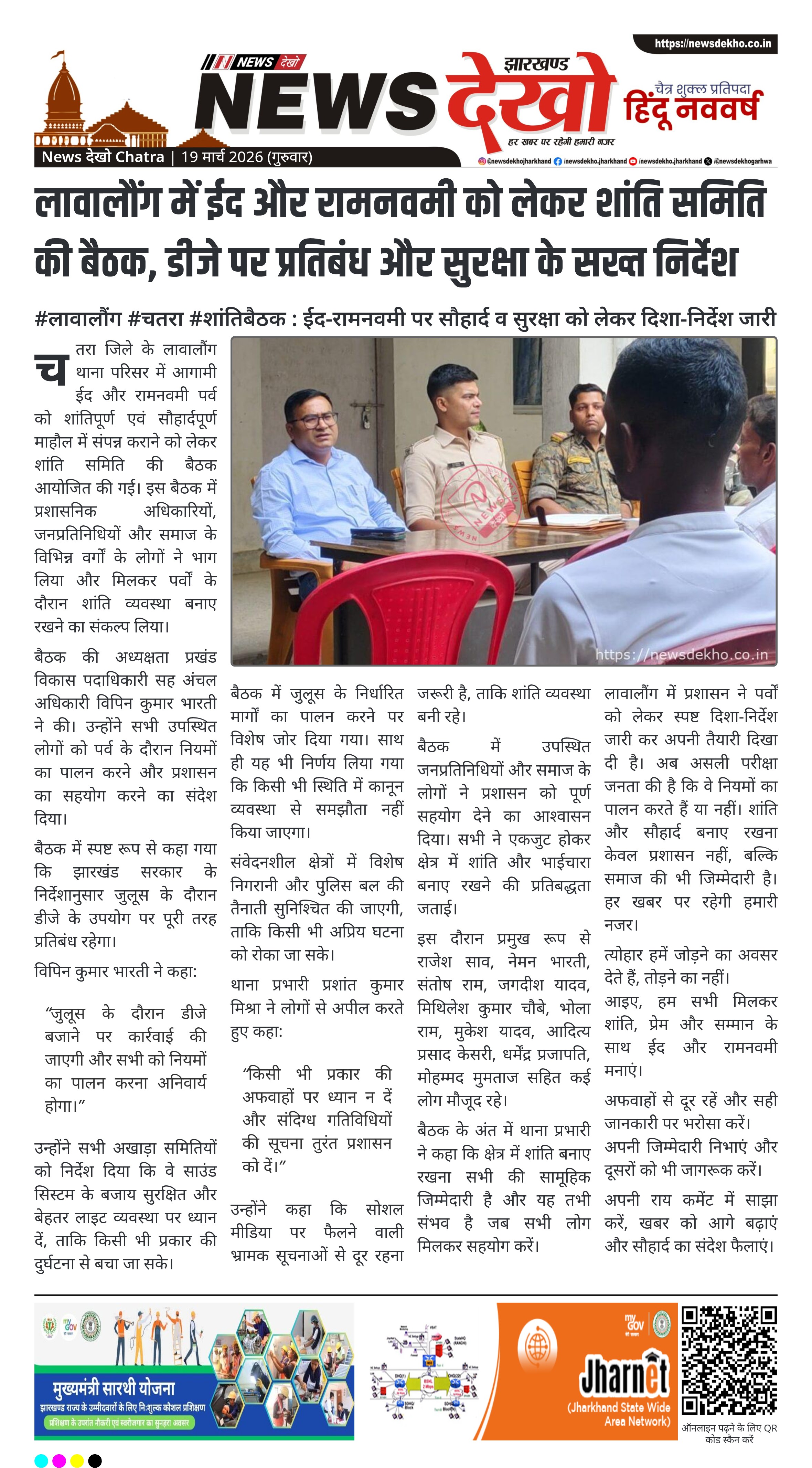 #लावालौंग #चतरा #शांतिबैठक : ईद-रामनवमी पर सौहार्द व सुरक्षा को लेकर दिशा-निर्देश जारी।