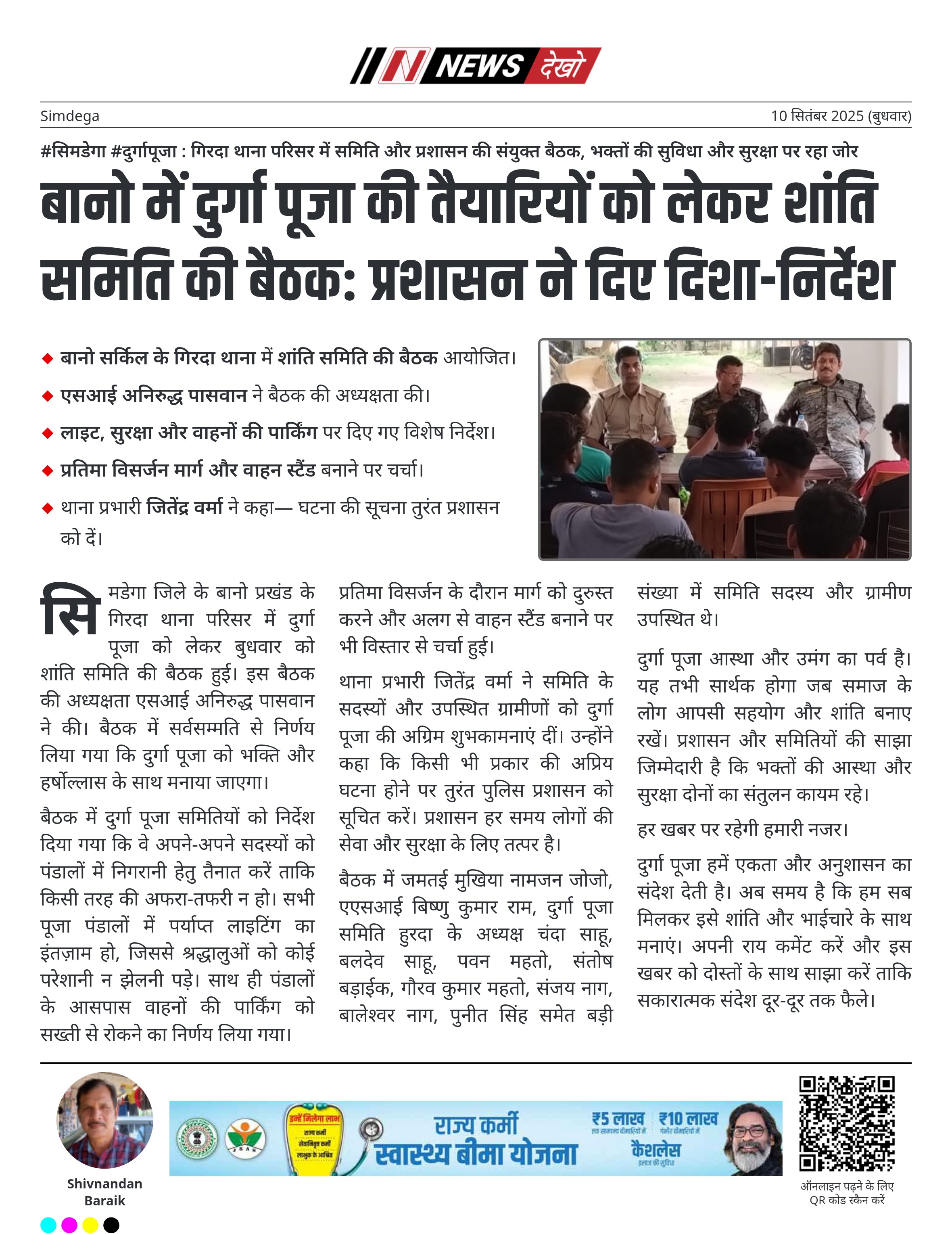 #सिमडेगा #दुर्गापूजा : गिरदा थाना परिसर में समिति और प्रशासन की संयुक्त बैठक, भक्तों की सुविधा और सुरक्षा पर रहा जोर