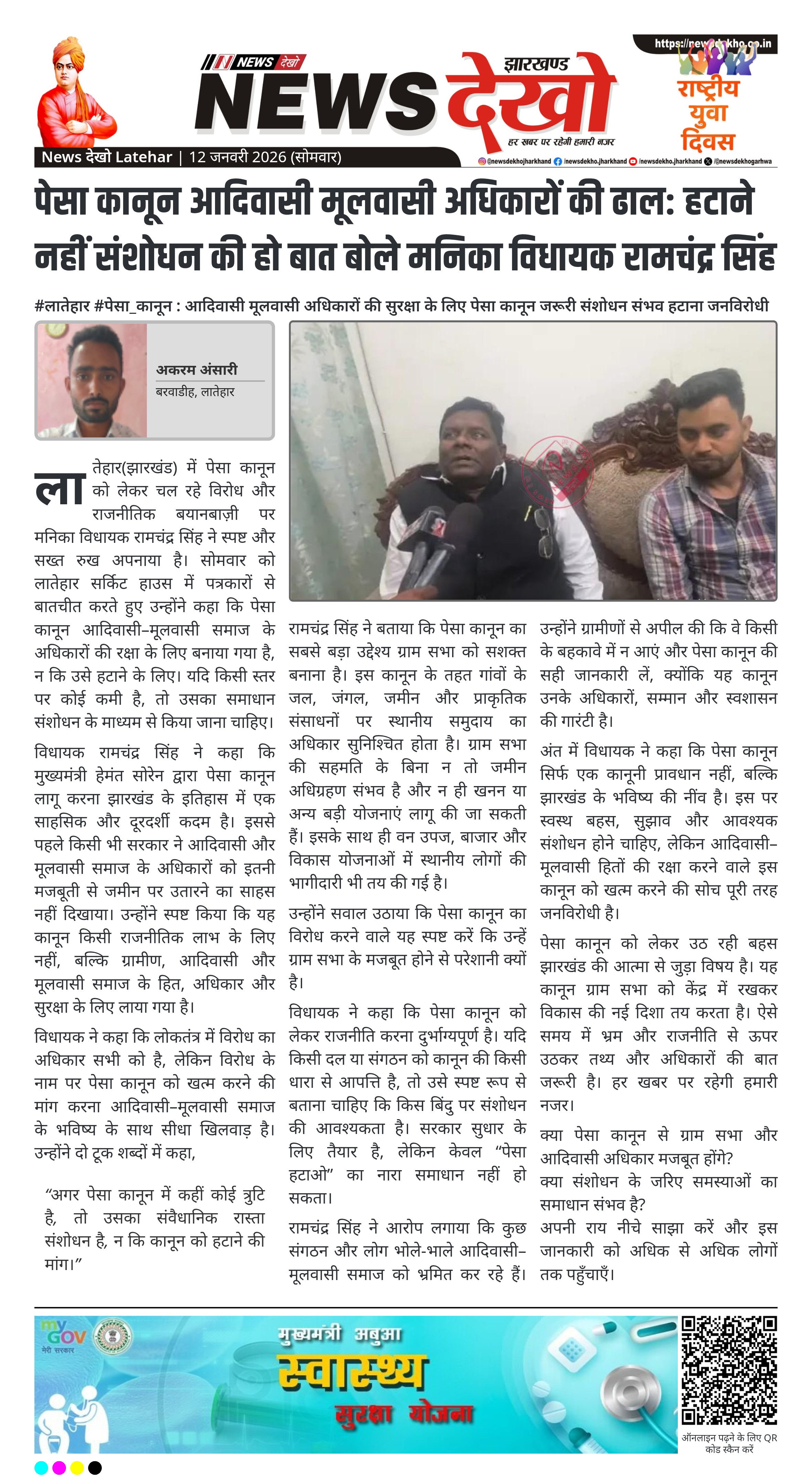 पेसा कानून को लेकर उठ रही बहस झारखंड की आत्मा से जुड़ा विषय है। यह कानून ग्राम सभा को केंद्र में रखकर विकास की नई दिशा तय करता है। ऐसे समय में भ्रम और राजनीति से ऊपर उठकर तथ्य और अधिकारों की बात जरूरी है। हर खबर पर रहेगी हमारी नजर।