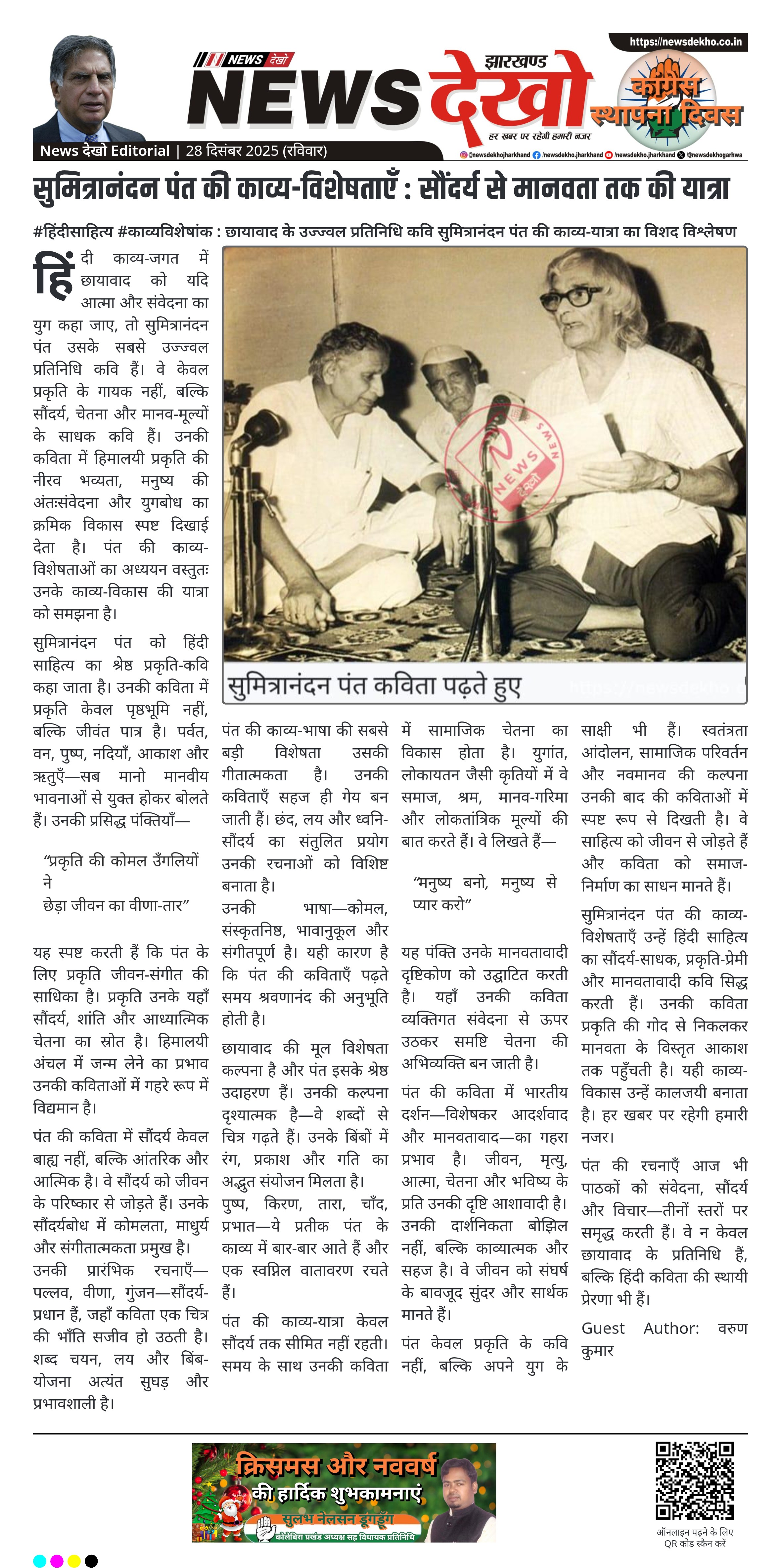 न्यूज़ देखो: पंत की काव्य-यात्रा का महत्व