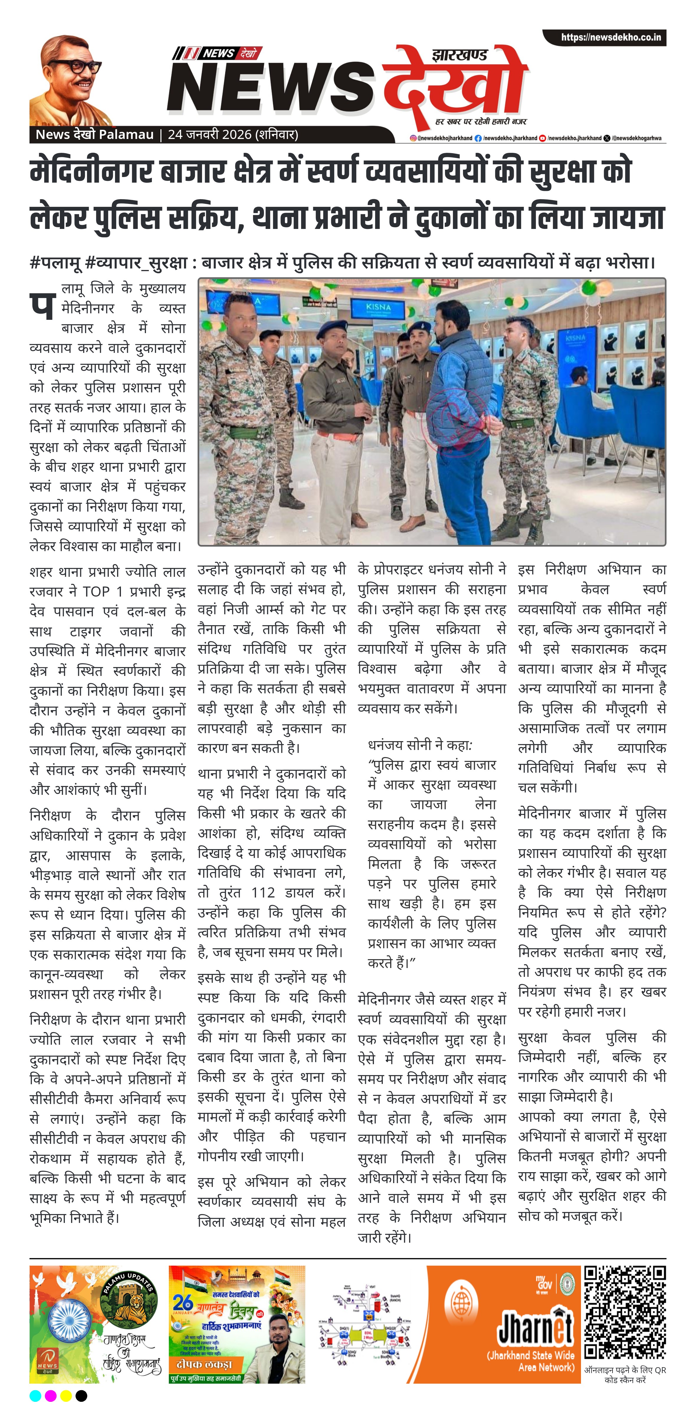 #पलामू #व्यापार_सुरक्षा : बाजार क्षेत्र में पुलिस की सक्रियता से स्वर्ण व्यवसायियों में बढ़ा भरोसा।