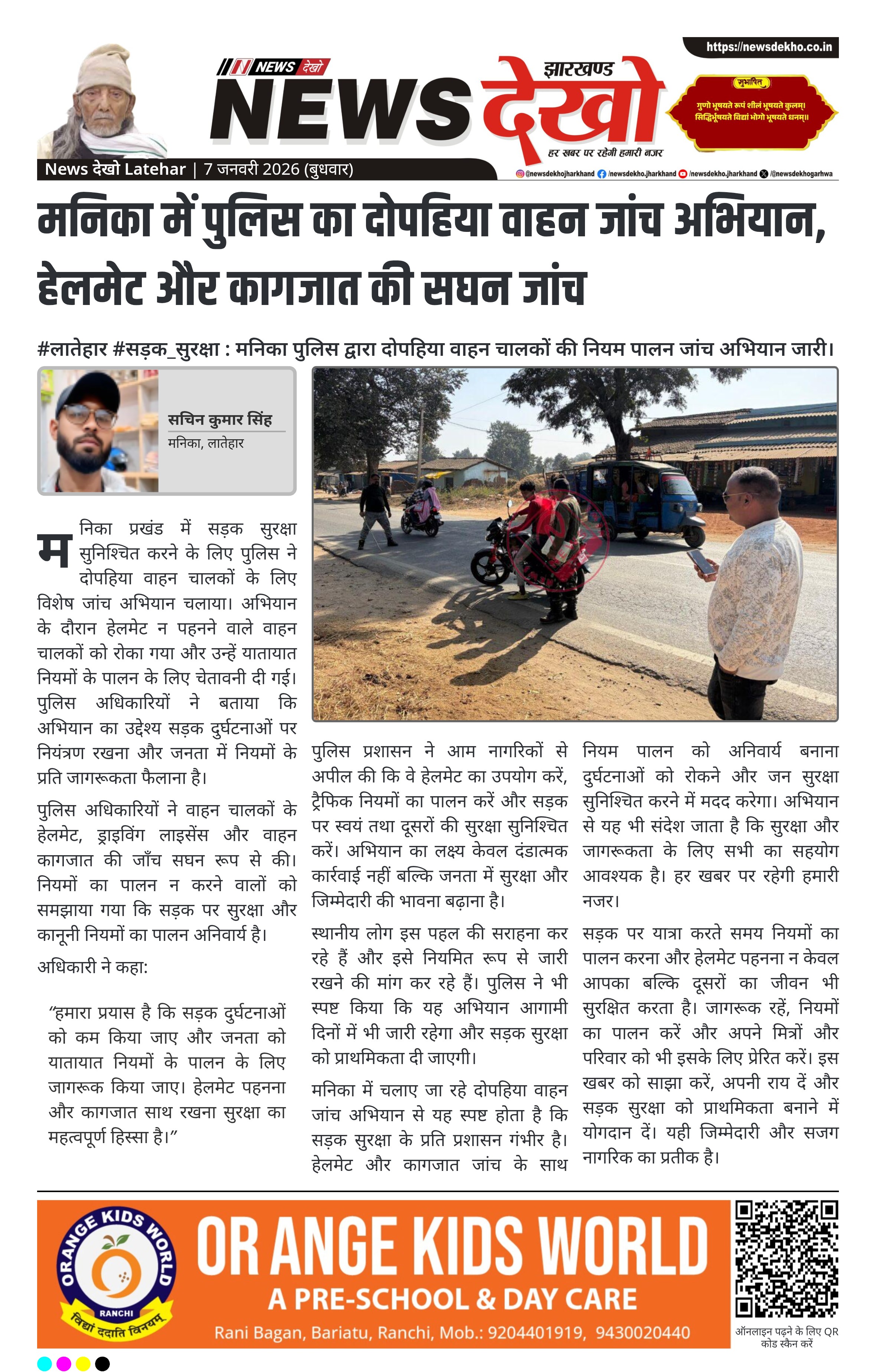 मनिका में चलाए जा रहे दोपहिया वाहन जांच अभियान से यह स्पष्ट होता है कि सड़क सुरक्षा के प्रति प्रशासन गंभीर है। हेलमेट और कागजात जांच के साथ नियम पालन को अनिवार्य बनाना दुर्घटनाओं को रोकने और जन सुरक्षा सुनिश्चित करने में मदद करेगा। अभियान से यह भी संदेश जाता है कि सुरक्षा और जागरूकता के लिए सभी का सहयोग आवश्यक है। हर खबर पर रहेगी हमारी नजर।