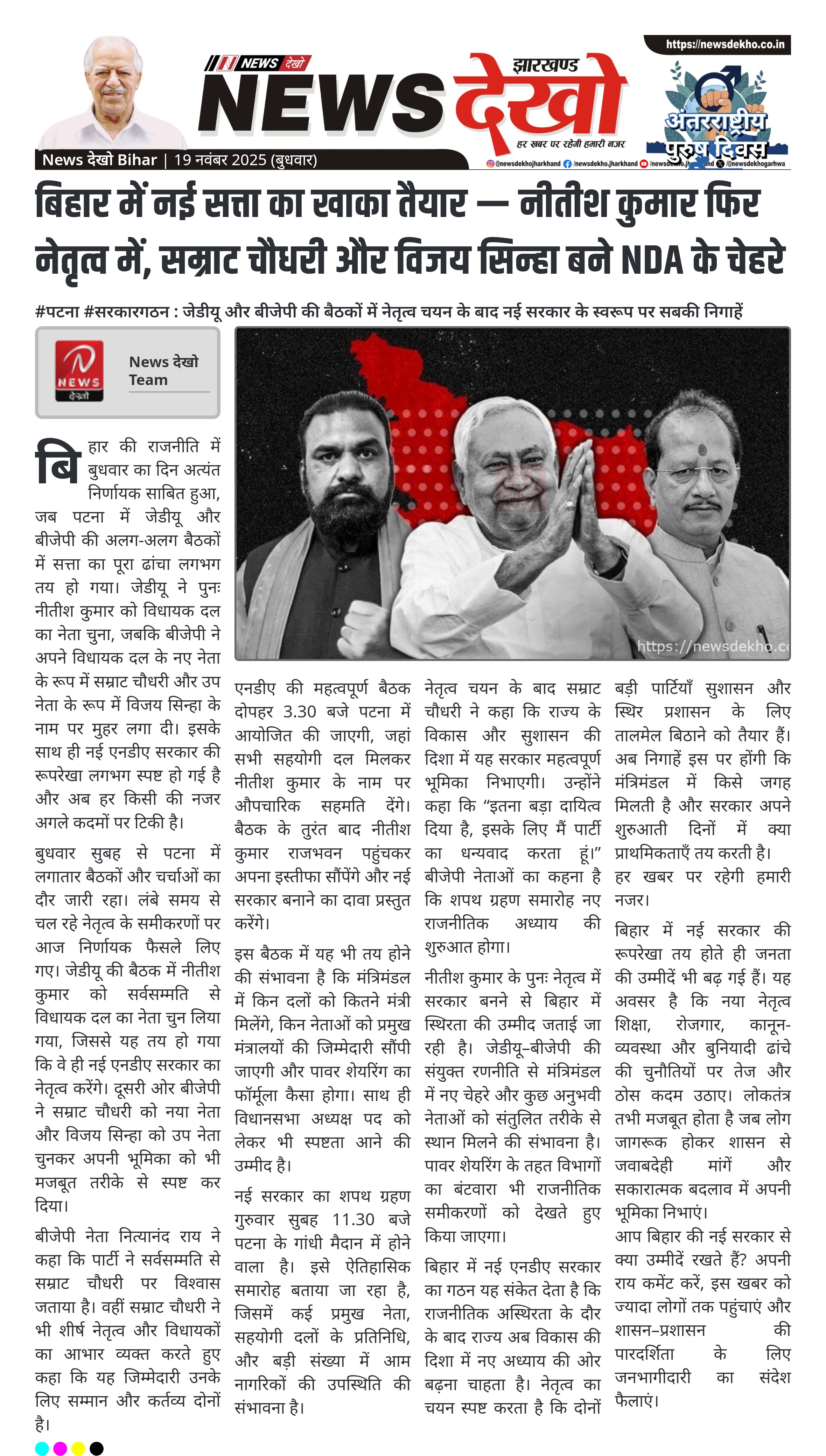 बिहार में नई सत्ता का खाका तैयार — नीतीश कुमार फिर नेतृत्व में, सम्राट चौधरी और विजय सिन्हा बने NDA के चेहरे