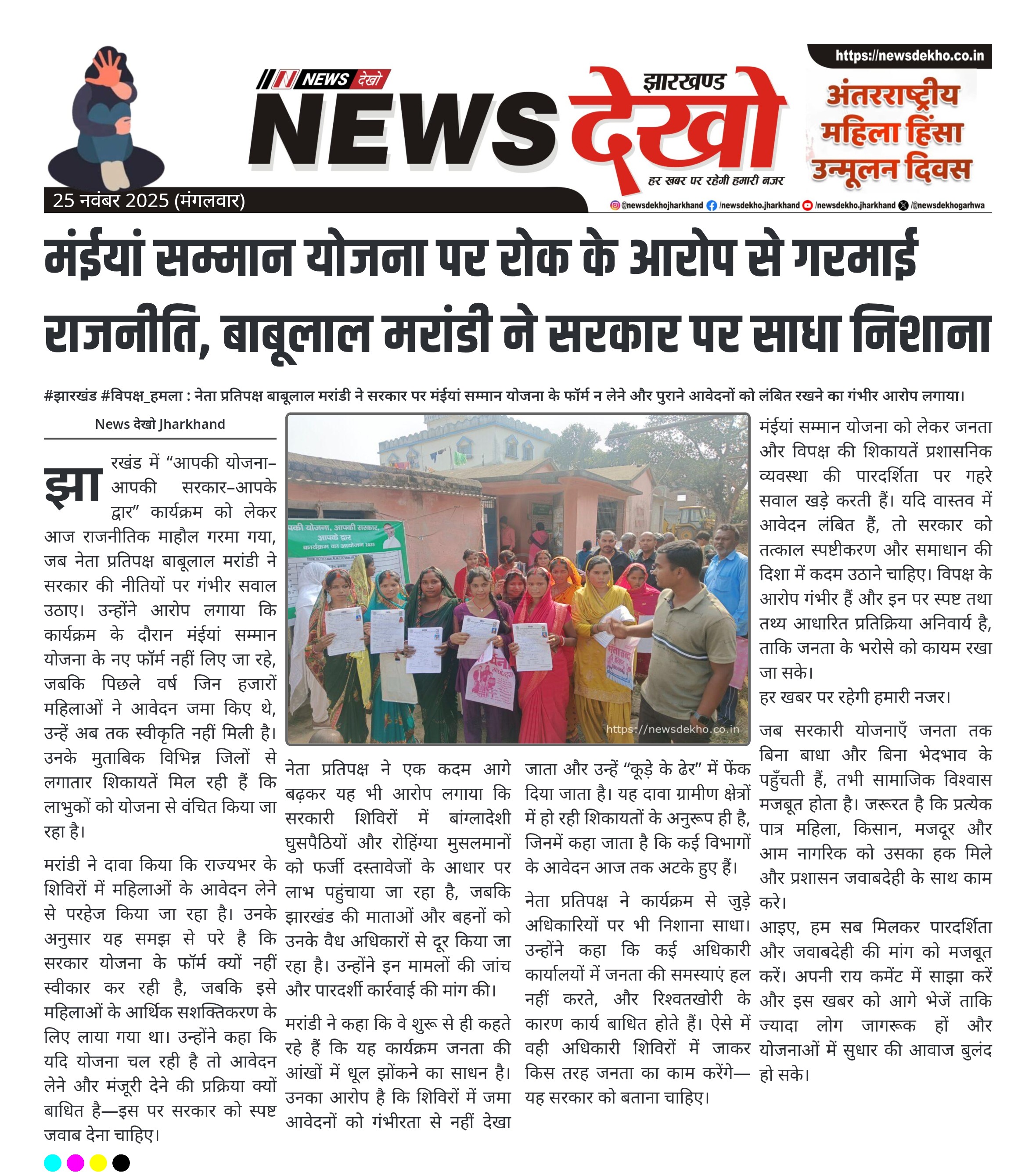#झारखंड #विपक्ष_हमला : नेता प्रतिपक्ष बाबूलाल मरांडी ने सरकार पर मंईयां सम्मान योजना के फॉर्म न लेने और पुराने आवेदनों को लंबित रखने का गंभीर आरोप लगाया। बाबूलाल मरांडी का आरोप, मंईयां सम्मान योजना के फॉर्म स्वीकृत नहीं। पिछले वर्ष जमा हुए कई आवेदन अभी लंबित, ग्रामीणों की शिकायत। विपक्ष…