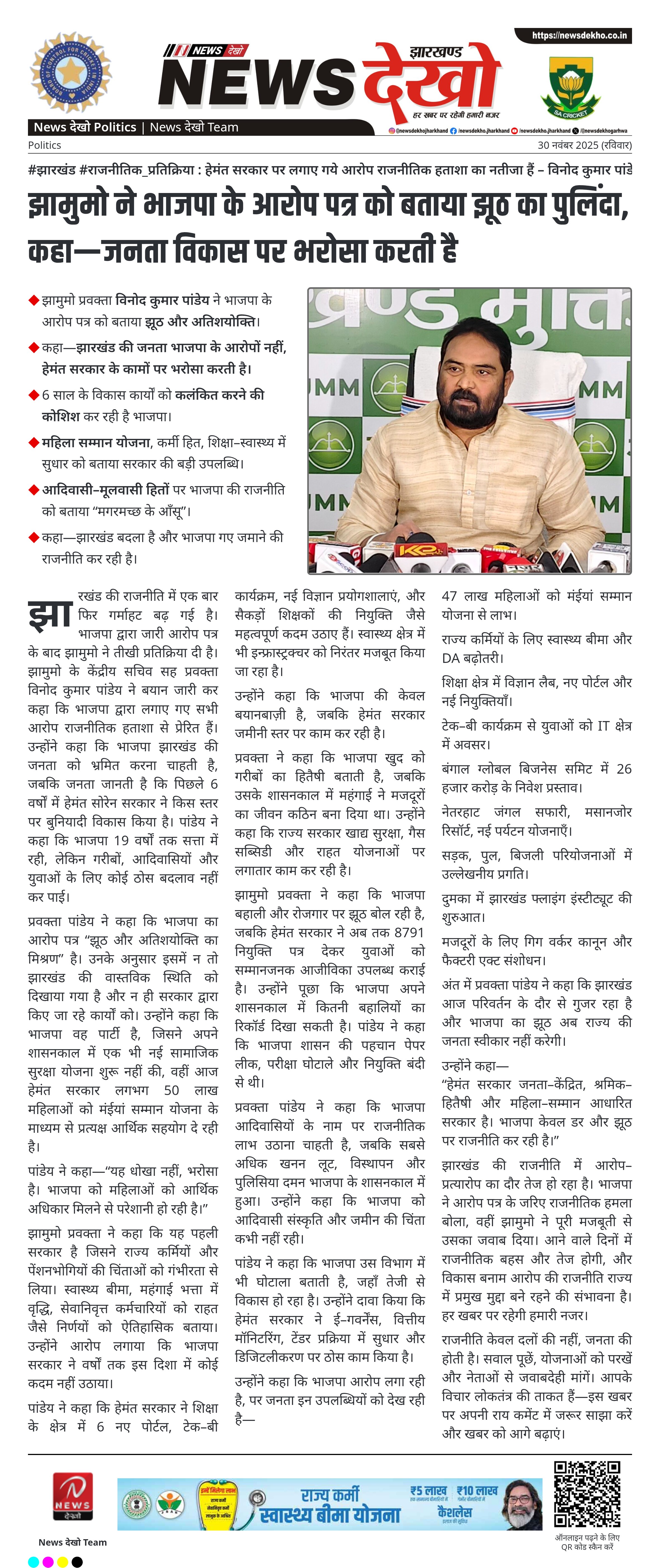 झामुमो ने भाजपा के आरोप पत्र को बताया झूठ का पुलिंदा, कहा—जनता विकास पर भरोसा करती है