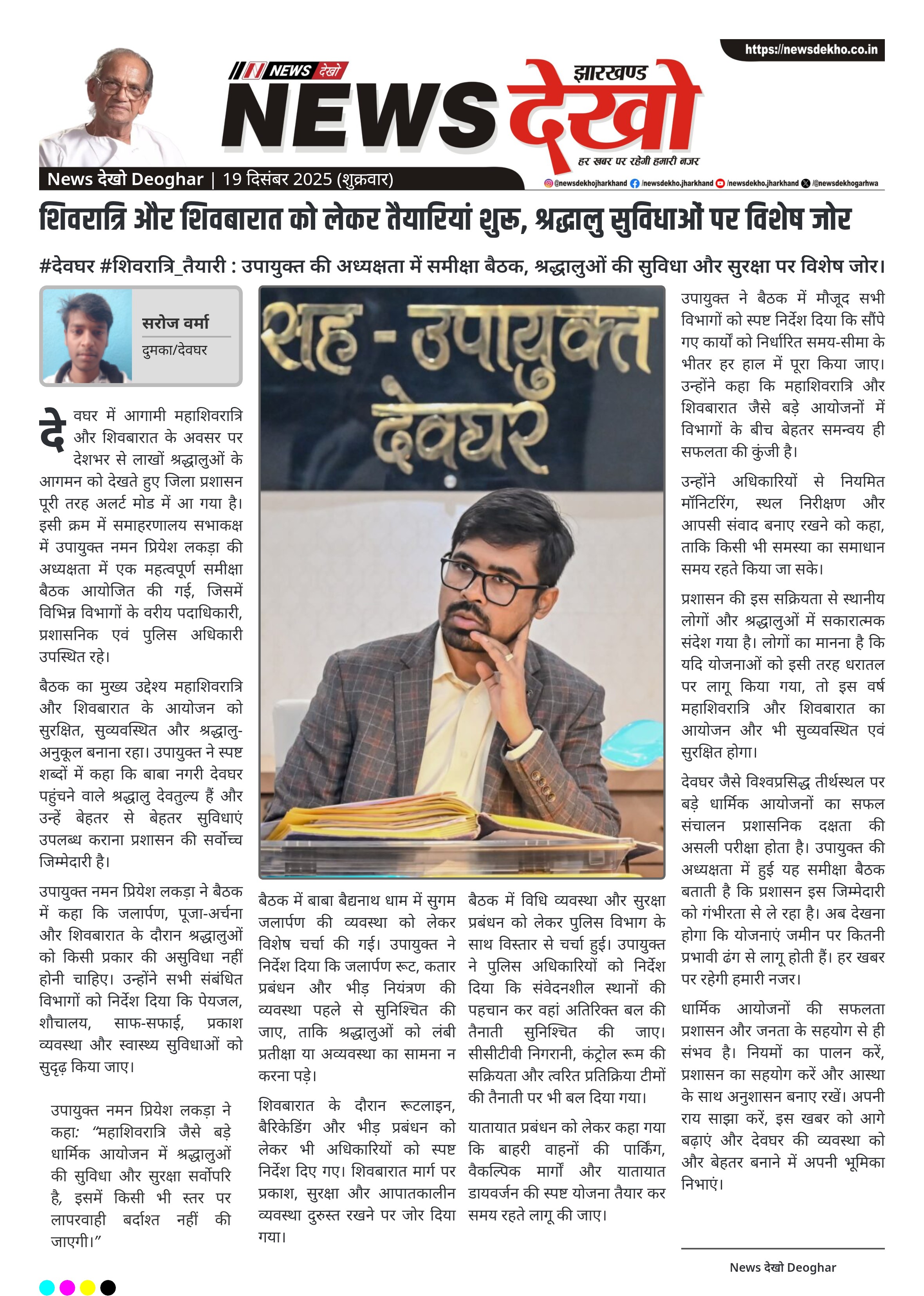 #देवघर #शिवरात्रि_तैयारी : उपायुक्त की अध्यक्षता में समीक्षा बैठक, श्रद्धालुओं की सुविधा और सुरक्षा पर विशेष जोर।