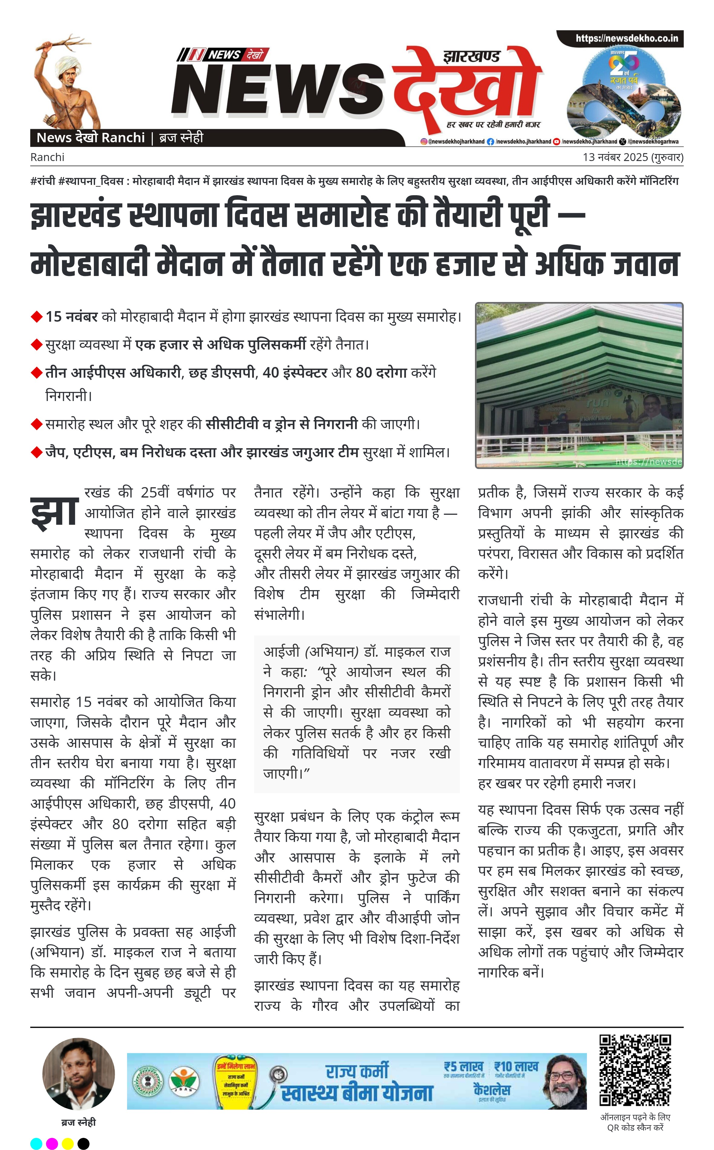 #रांची #स्थापना_दिवस : मोरहाबादी मैदान में झारखंड स्थापना दिवस के मुख्य समारोह के लिए बहुस्तरीय सुरक्षा व्यवस्था, तीन आईपीएस अधिकारी करेंगे मॉनिटरिंग