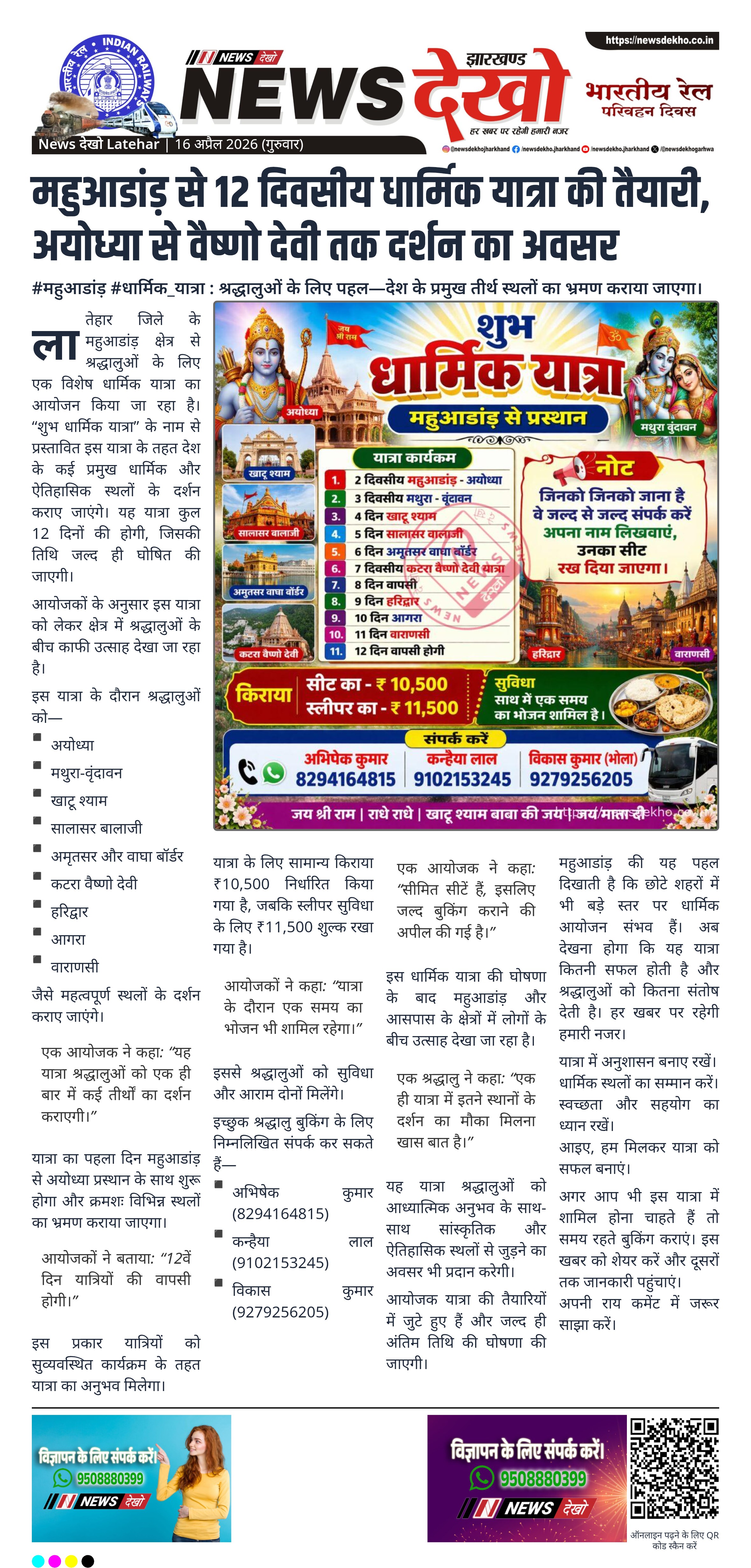 अगर आप भी इस यात्रा में शामिल होना चाहते हैं तो समय रहते बुकिंग कराएं। इस खबर को शेयर करें और दूसरों तक जानकारी पहुंचाएं।