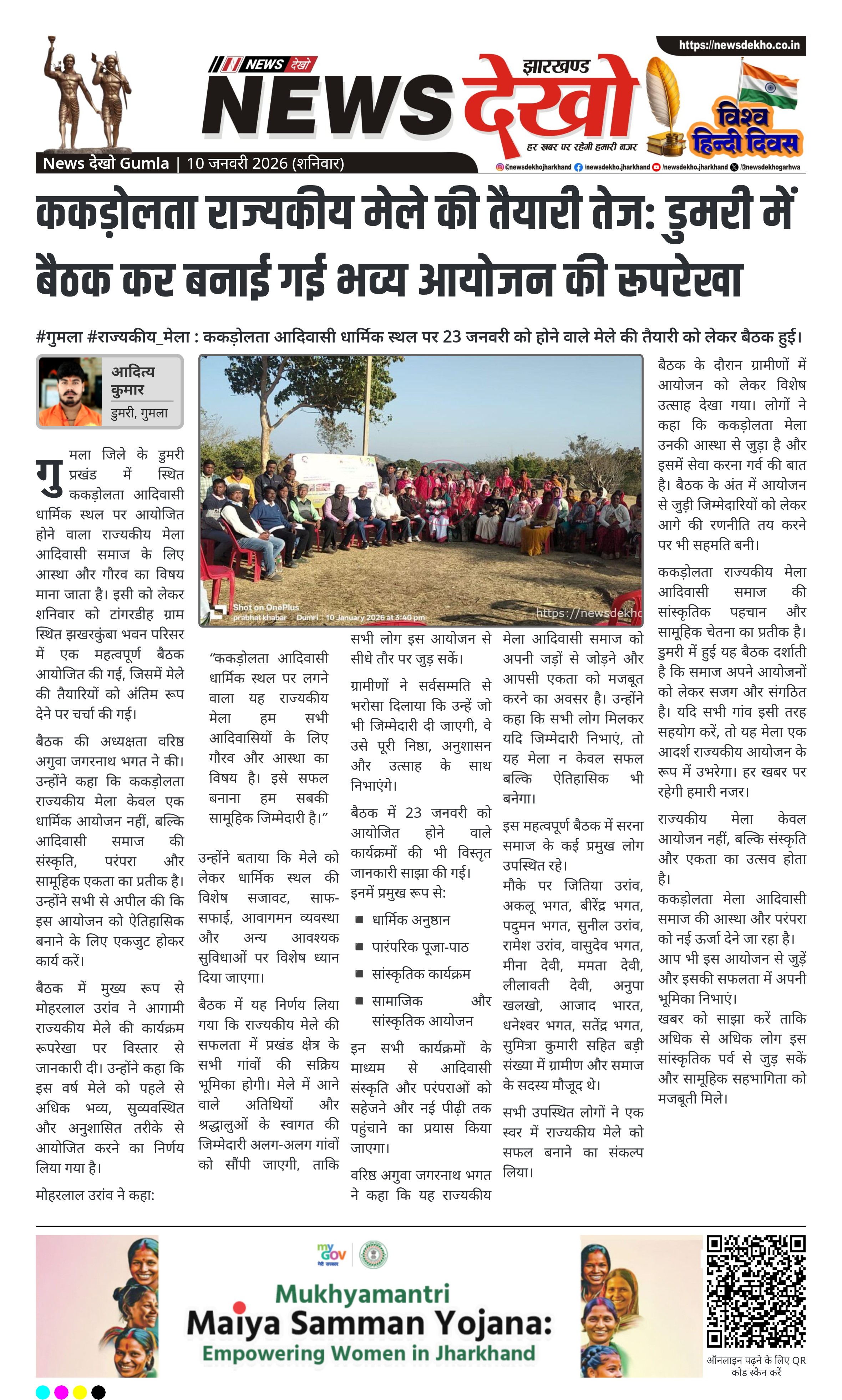ककड़ोलता राज्यकीय मेला आदिवासी समाज की सांस्कृतिक पहचान और सामूहिक चेतना का प्रतीक है। डुमरी में हुई यह बैठक दर्शाती है कि समाज अपने आयोजनों को लेकर सजग और संगठित है। यदि सभी गांव इसी तरह सहयोग करें, तो यह मेला एक आदर्श राज्यकीय आयोजन के रूप में उभरेगा। हर खबर पर रहेगी हमारी नजर।