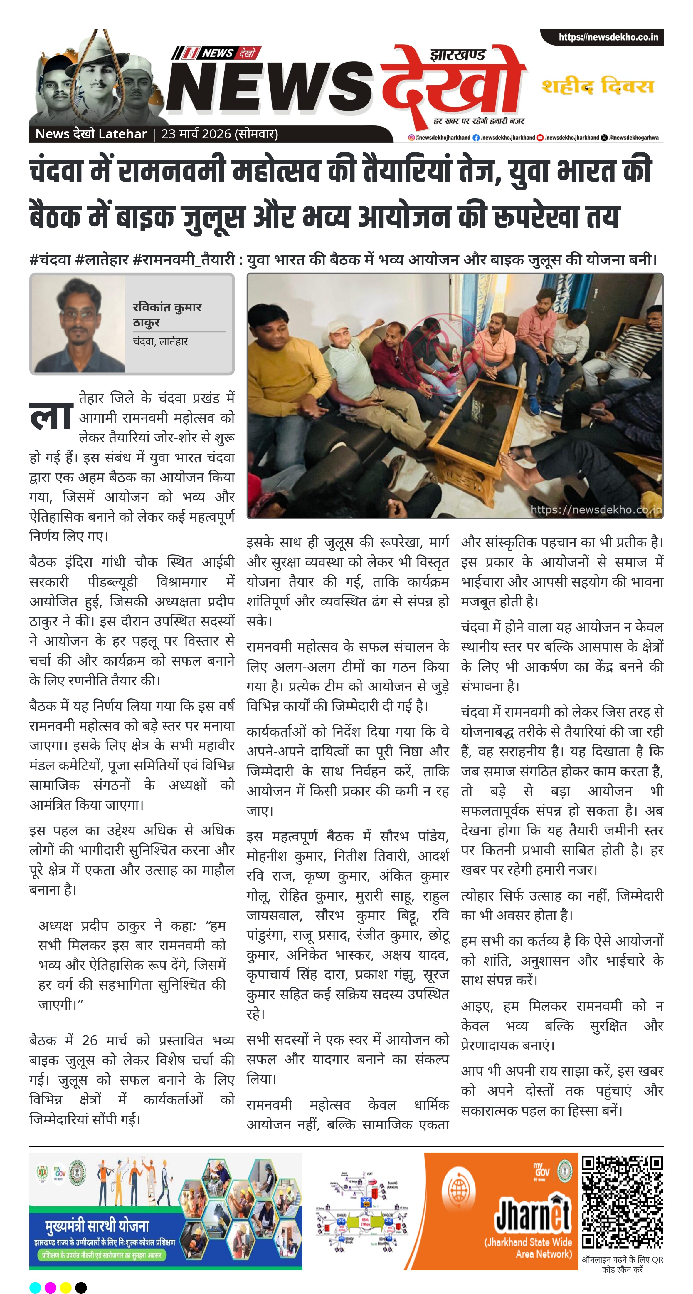 चंदवा में रामनवमी को लेकर जिस तरह से योजनाबद्ध तरीके से तैयारियां की जा रही हैं, वह सराहनीय है। यह दिखाता है कि जब समाज संगठित होकर काम करता है, तो बड़े से बड़ा आयोजन भी सफलतापूर्वक संपन्न हो सकता है। अब देखना होगा कि यह तैयारी जमीनी स्तर पर कितनी प्रभावी साबित होती है। हर खबर पर रहेगी हमारी नजर।