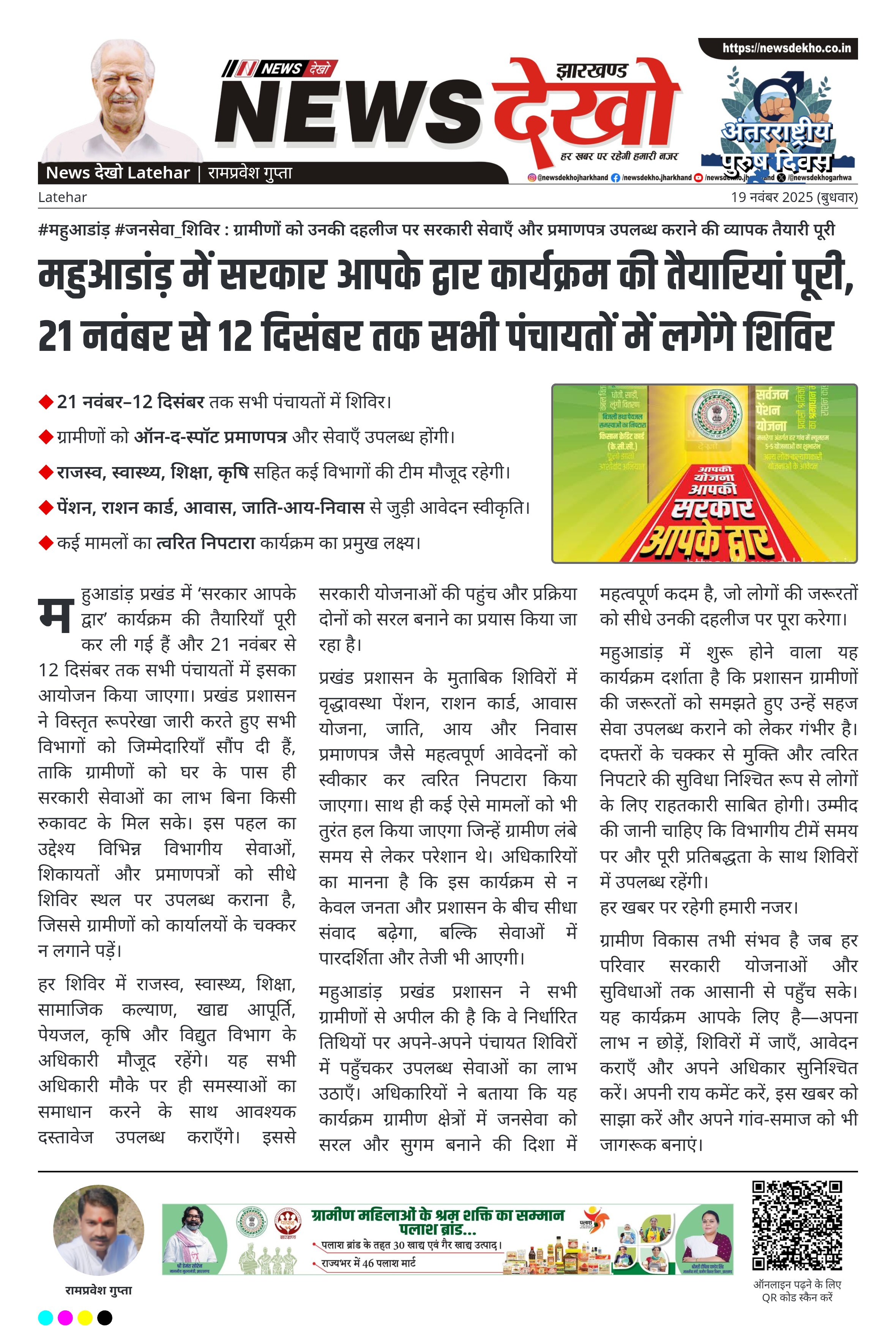 - 21 नवंबर–12 दिसंबर तक सभी पंचायतों में शिविर।