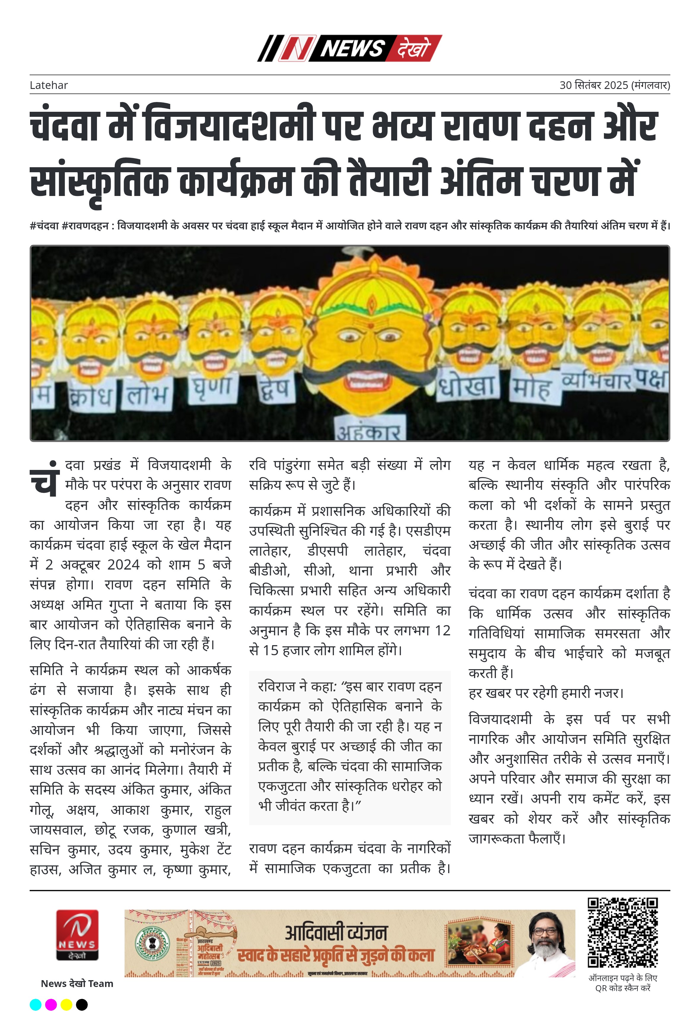 रविराज ने कहा: “इस बार रावण दहन कार्यक्रम को ऐतिहासिक बनाने के लिए पूरी तैयारी की जा रही है। यह न केवल बुराई पर अच्छाई की जीत का प्रतीक है, बल्कि चंदवा की सामाजिक एकजुटता और सांस्कृतिक धरोहर को भी जीवंत करता है।”