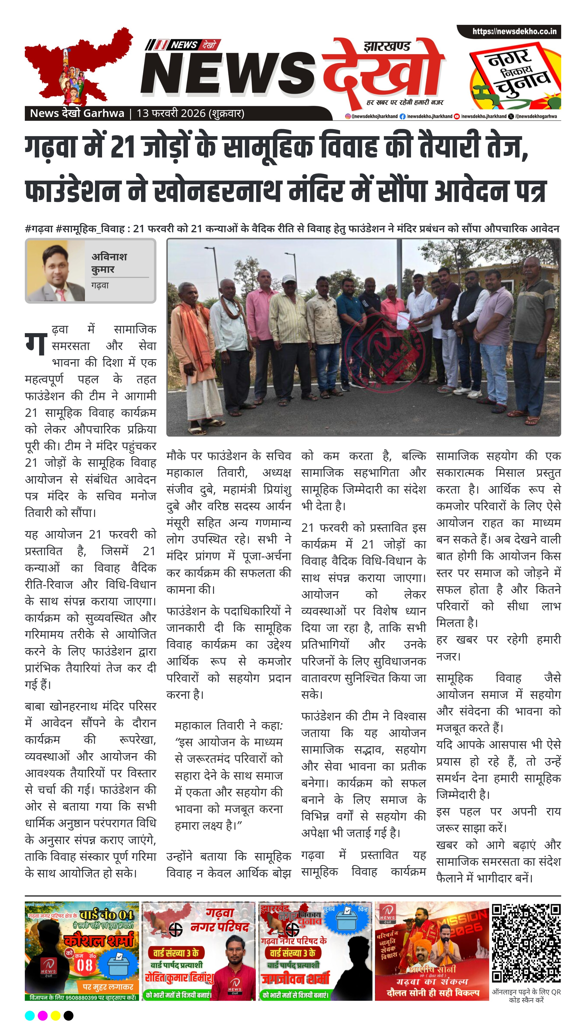 #गढ़वा #सामूहिक_विवाह : 21 फरवरी को 21 कन्याओं के वैदिक रीति से विवाह हेतु फाउंडेशन ने मंदिर प्रबंधन को सौंपा औपचारिक आवेदन।