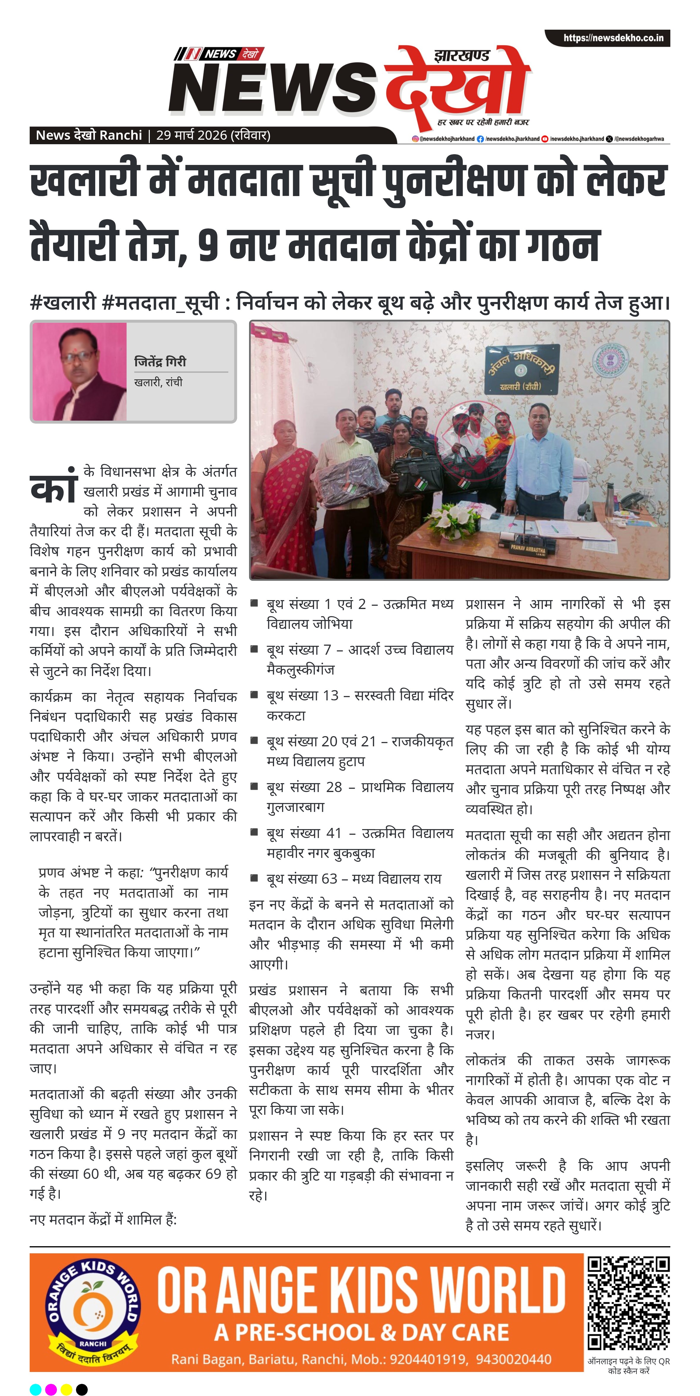 #खलारी #मतदाता_सूची : निर्वाचन को लेकर बूथ बढ़े और पुनरीक्षण कार्य तेज हुआ।