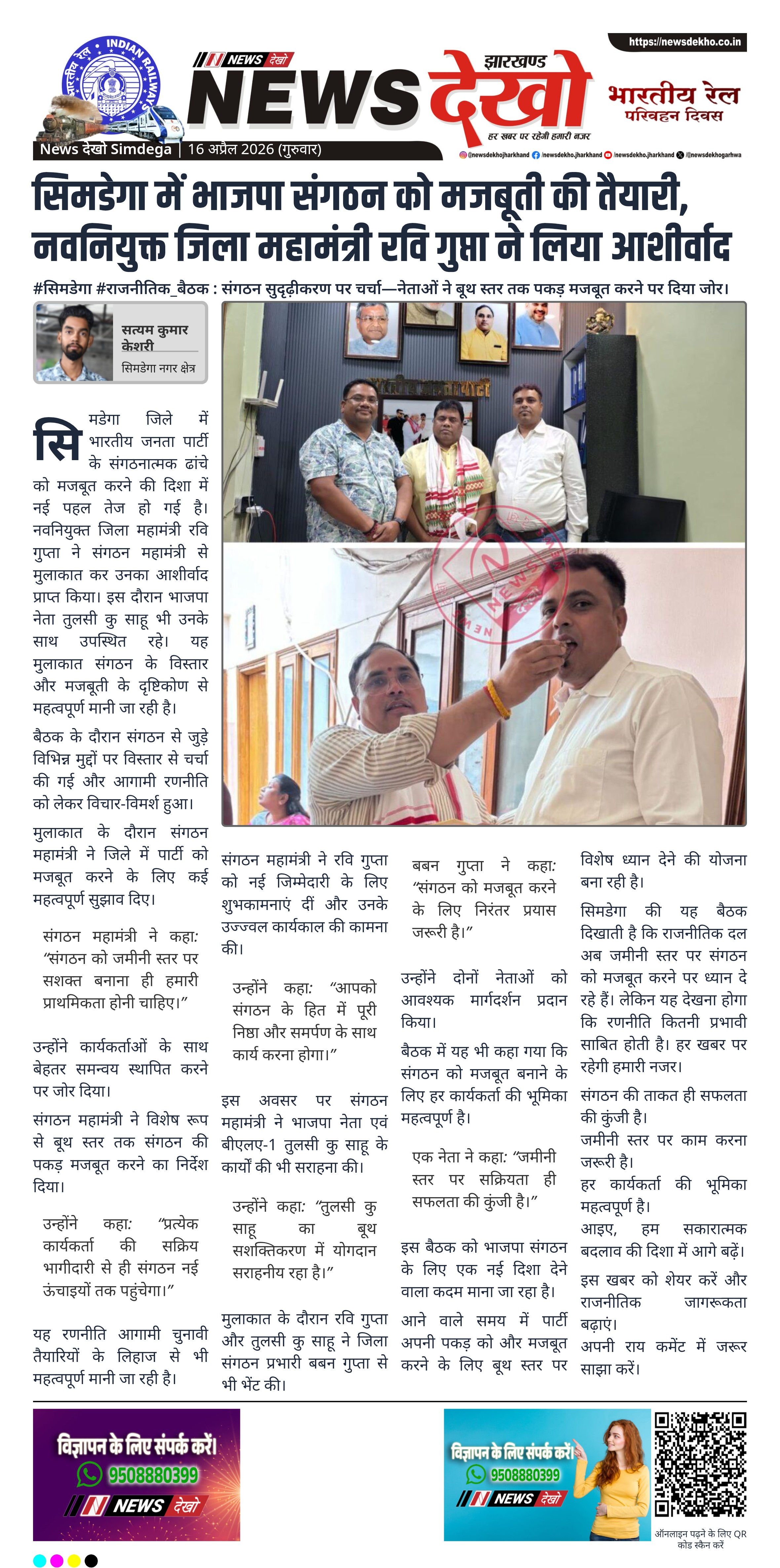 - रवि गुप्ता ने संगठन महामंत्री से मुलाकात की।