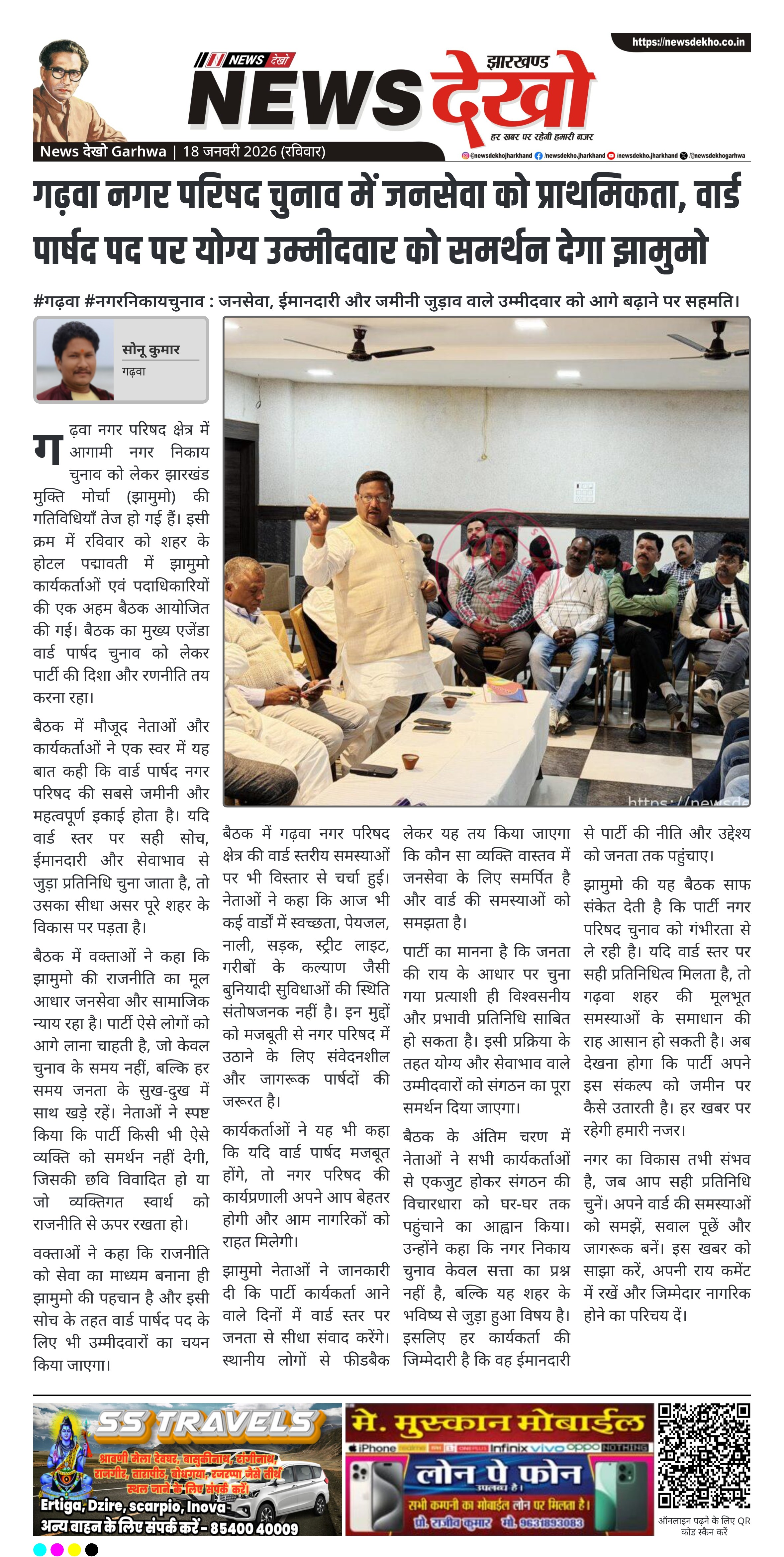 गढ़वा नगर परिषद चुनाव में जनसेवा को प्राथमिकता, वार्ड पार्षद पद पर योग्य उम्मीदवार को समर्थन देगा झामुमो