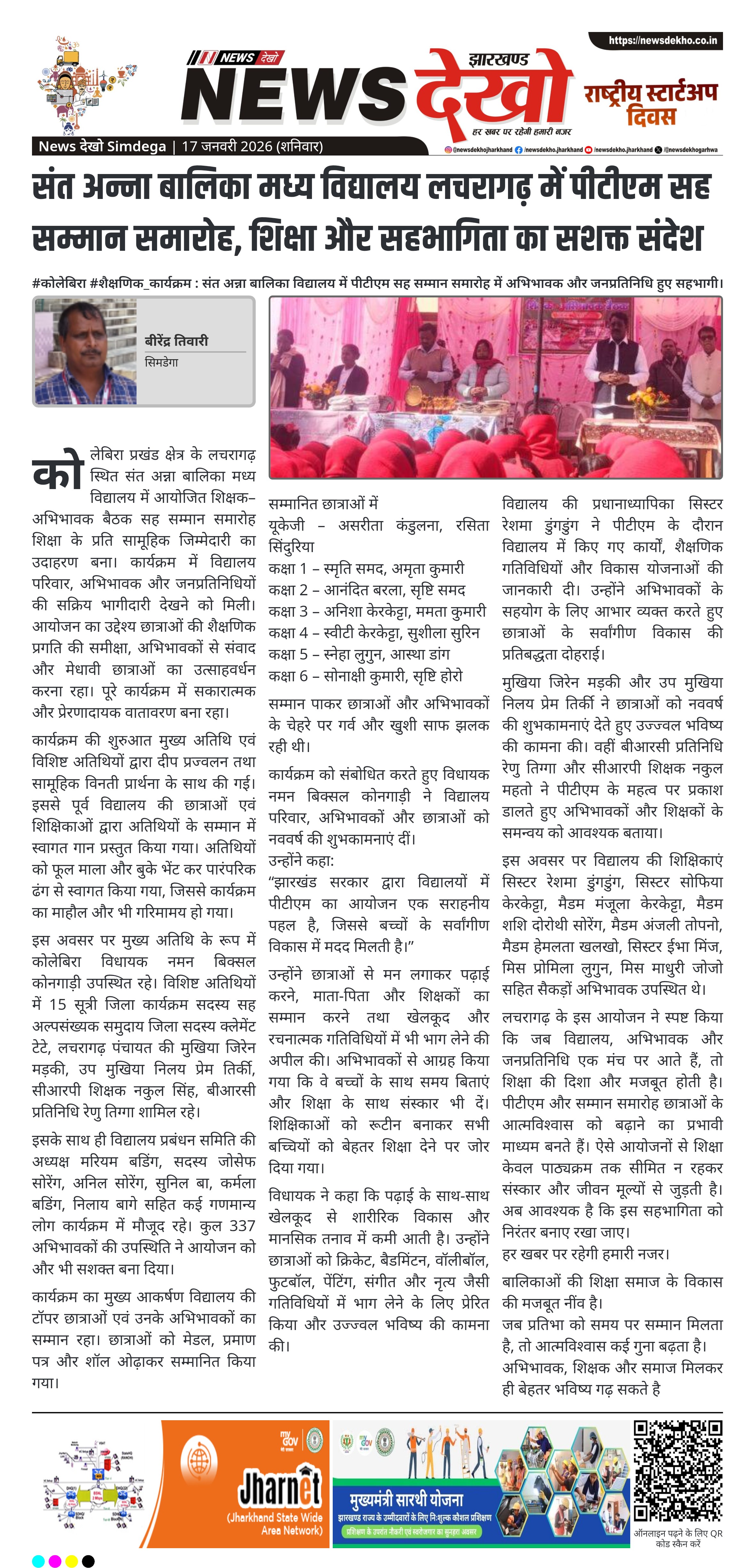 “झारखंड सरकार द्वारा विद्यालयों में पीटीएम का आयोजन एक सराहनीय पहल है, जिससे बच्चों के सर्वांगीण विकास में मदद मिलती है।”