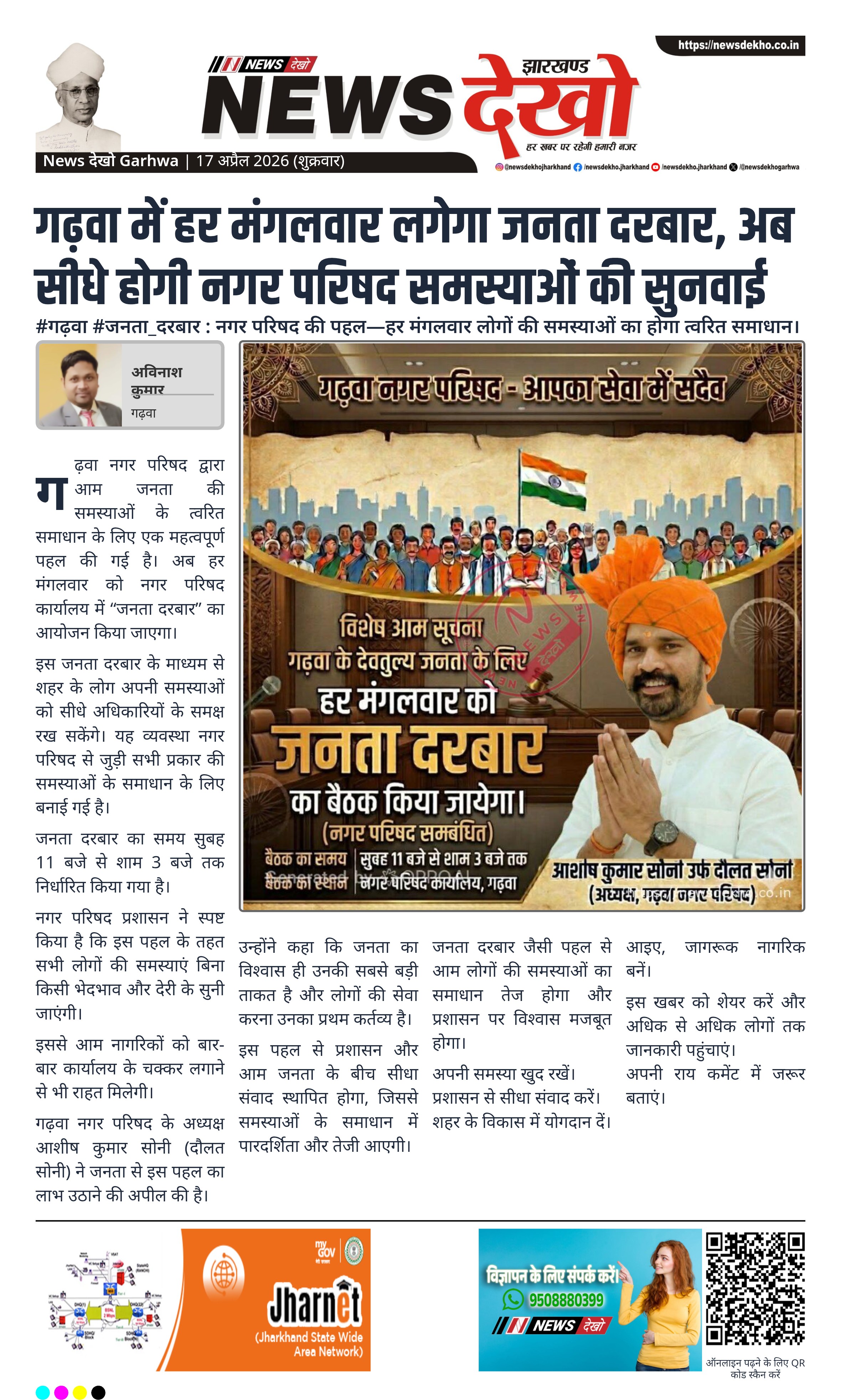 गढ़वा नगर परिषद के अध्यक्ष आशीष कुमार सोनी (दौलत सोनी) ने जनता से इस पहल का लाभ उठाने की अपील की है।