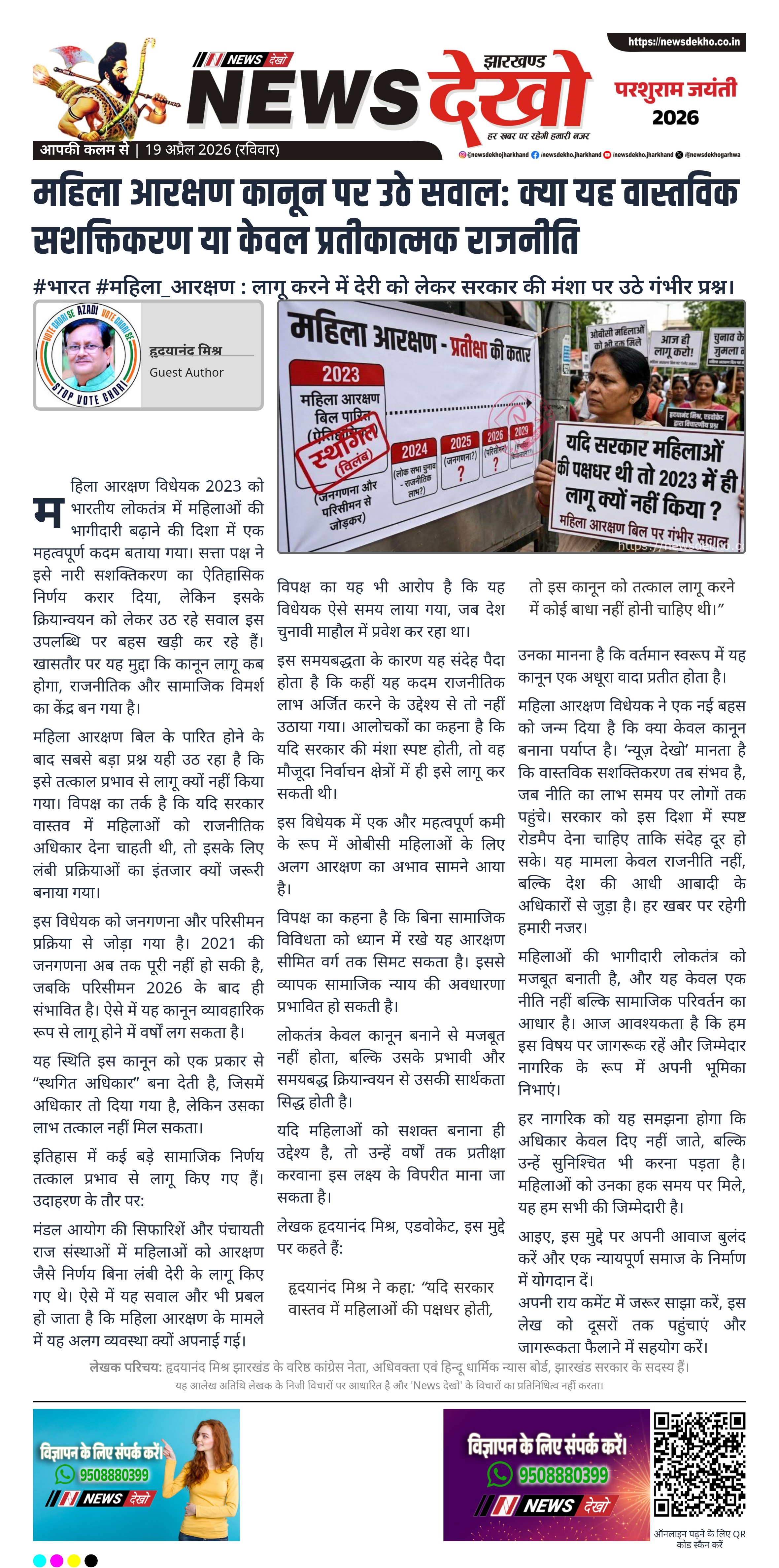 हृदयानंद मिश्र ने कहा: “यदि सरकार वास्तव में महिलाओं की पक्षधर होती, तो इस कानून को तत्काल लागू करने में कोई बाधा नहीं होनी चाहिए थी।”