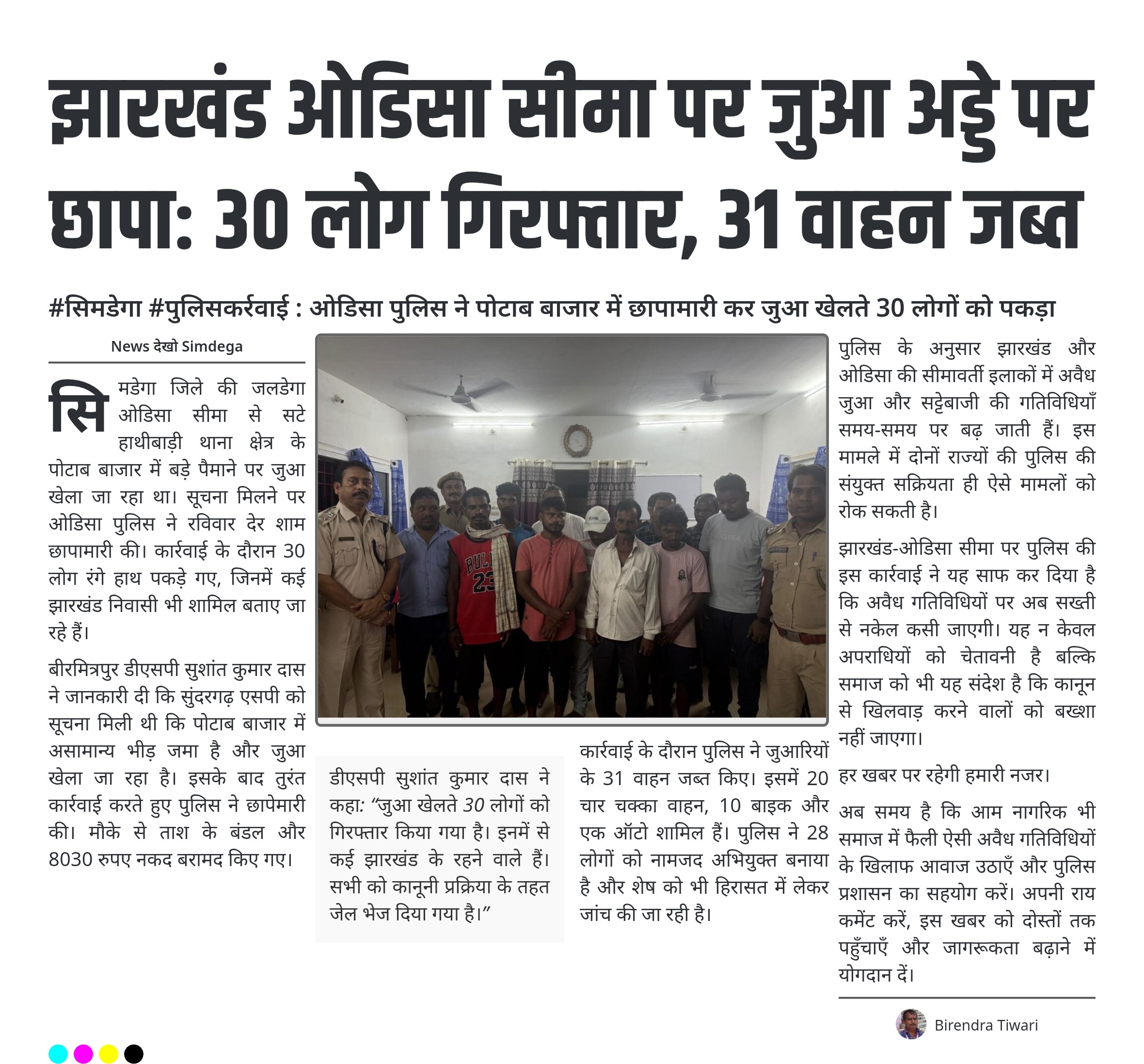 #सिमडेगा #पुलिसकर्रवाई : ओडिसा पुलिस ने पोटाब बाजार में छापामारी कर जुआ खेलते 30 लोगों को पकड़ा