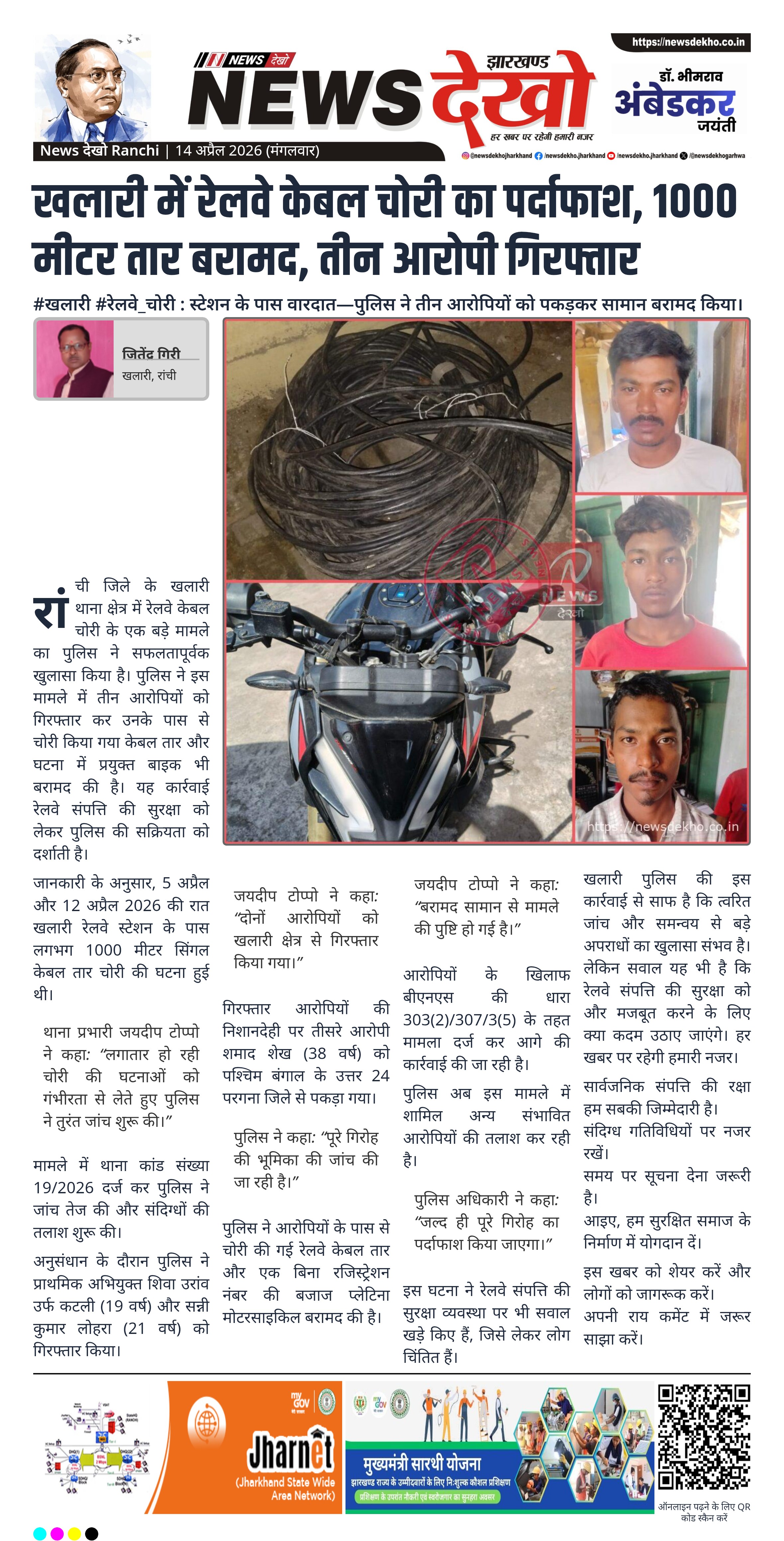 - खलारी में रेलवे केबल चोरी का खुलासा।