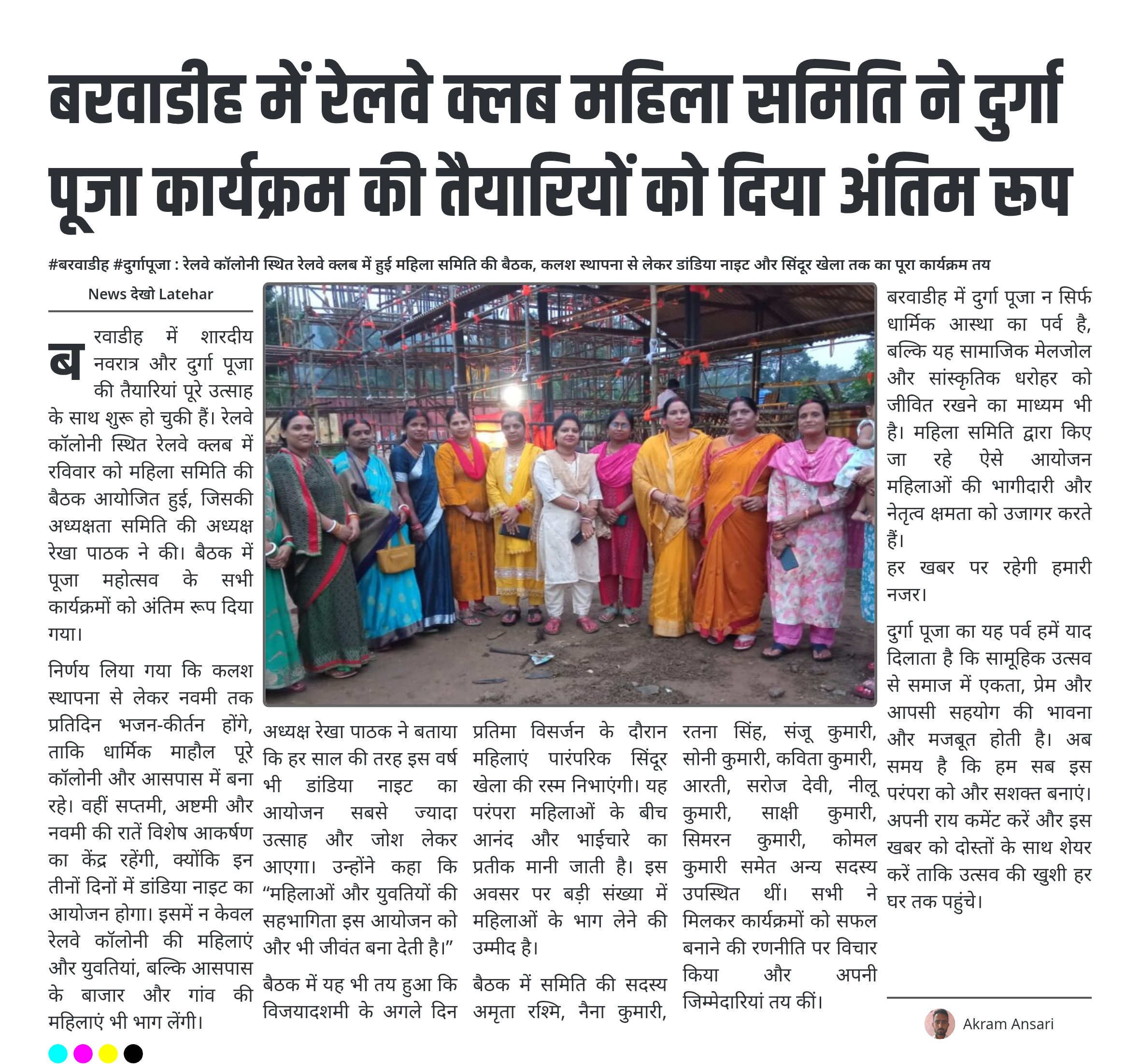 #बरवाडीह #दुर्गापूजा : रेलवे कॉलोनी स्थित रेलवे क्लब में हुई महिला समिति की बैठक, कलश स्थापना से लेकर डांडिया नाइट और सिंदूर खेला तक का पूरा कार्यक्रम तय