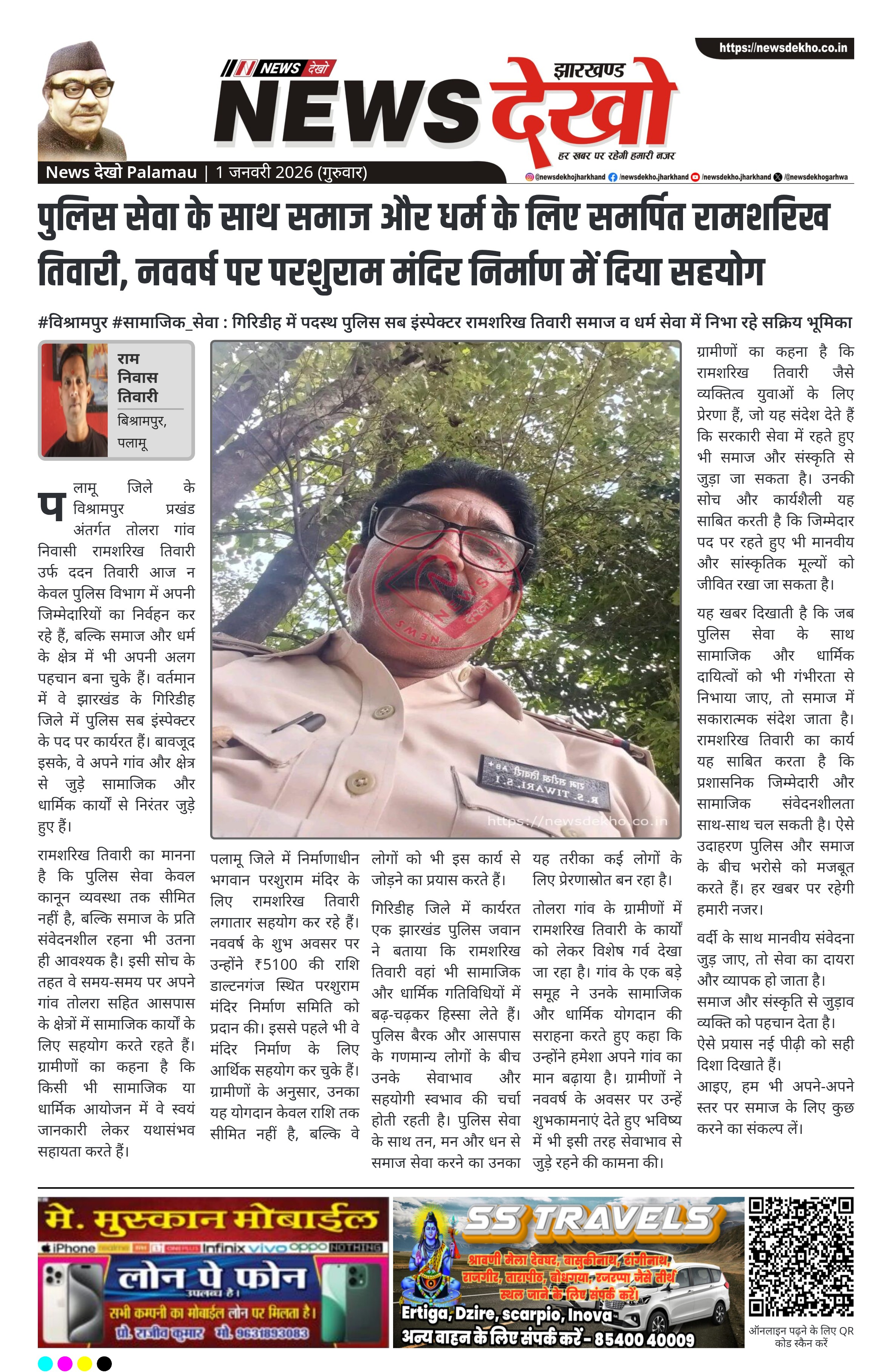 यह खबर दिखाती है कि जब पुलिस सेवा के साथ सामाजिक और धार्मिक दायित्वों को भी गंभीरता से निभाया जाए, तो समाज में सकारात्मक संदेश जाता है। रामशरिख तिवारी का कार्य यह साबित करता है कि प्रशासनिक जिम्मेदारी और सामाजिक संवेदनशीलता साथ-साथ चल सकती है। ऐसे उदाहरण पुलिस और समाज के बीच भरोसे को मजबूत करते हैं। हर खबर पर रहेगी हमारी नजर।