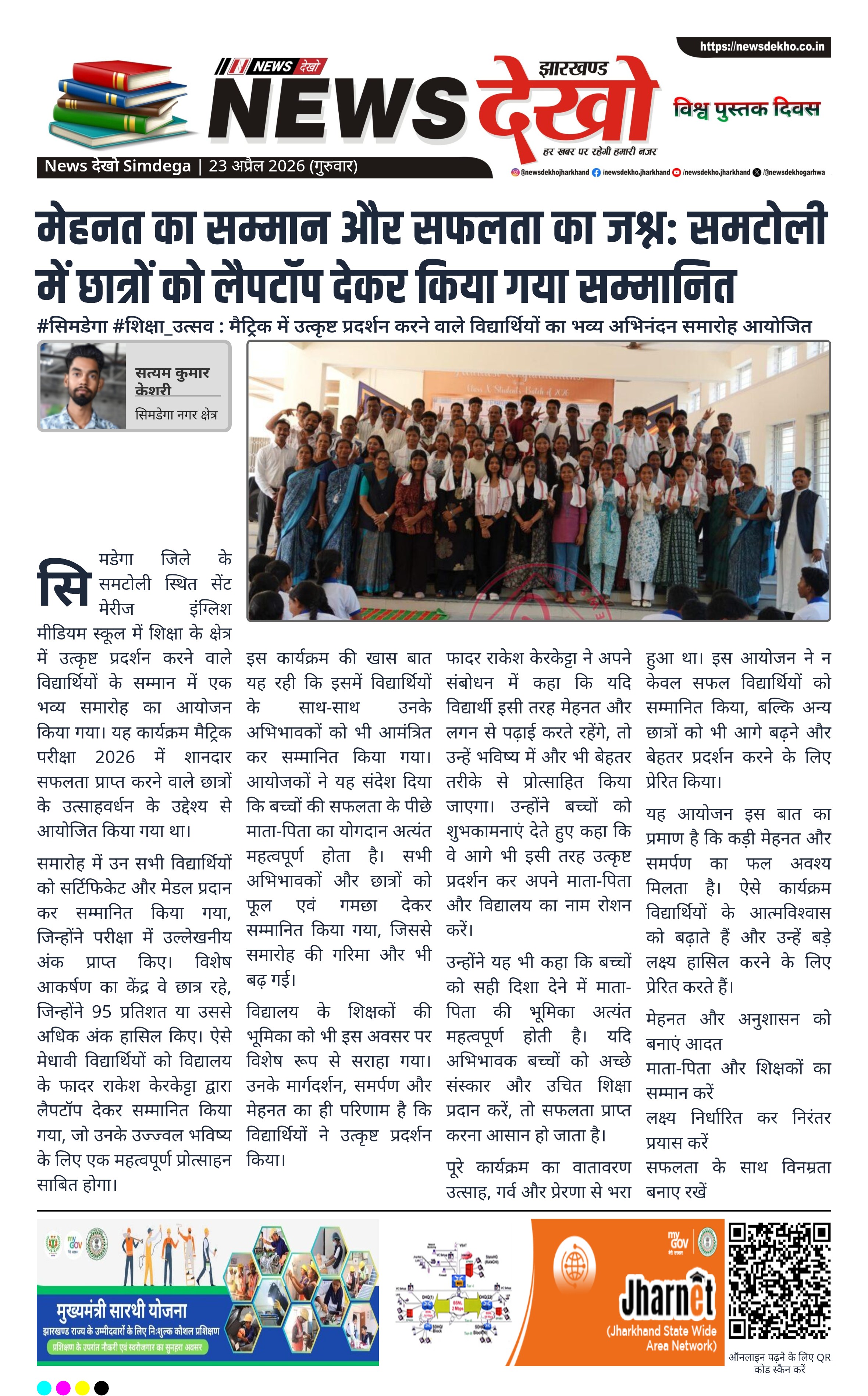 - सेंट मेरीज इंग्लिश मीडियम स्कूल, समटोली में भव्य सम्मान समारोह आयोजित।