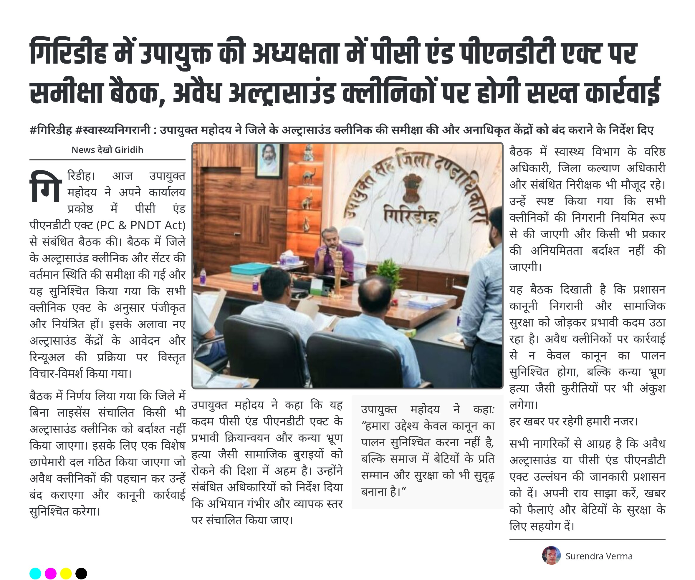 यह बैठक दिखाती है कि प्रशासन कानूनी निगरानी और सामाजिक सुरक्षा को जोड़कर प्रभावी कदम उठा रहा है। अवैध क्लीनिकों पर कार्रवाई से न केवल कानून का पालन सुनिश्चित होगा, बल्कि कन्या भ्रूण हत्या जैसी कुरीतियों पर भी अंकुश लगेगा।