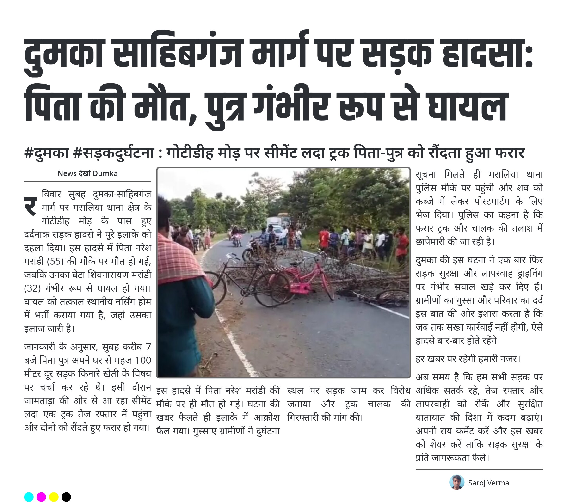 #दुमका #सड़कदुर्घटना : गोटीडीह मोड़ पर सीमेंट लदा ट्रक पिता-पुत्र को रौंदता हुआ फरार