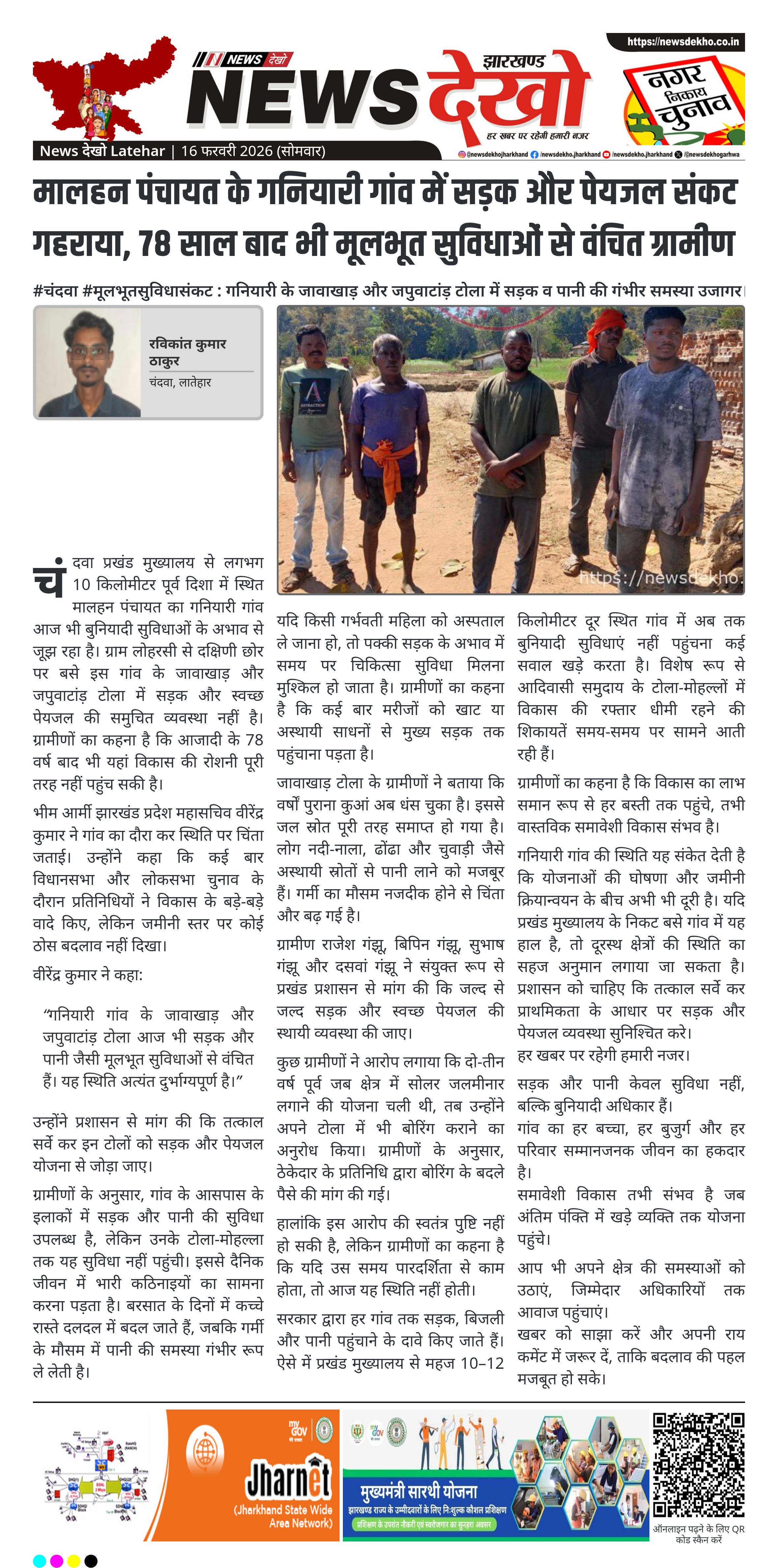 “गनियारी गांव के जावाखाड़ और जपुवाटांड़ टोला आज भी सड़क और पानी जैसी मूलभूत सुविधाओं से वंचित हैं। यह स्थिति अत्यंत दुर्भाग्यपूर्ण है।”
