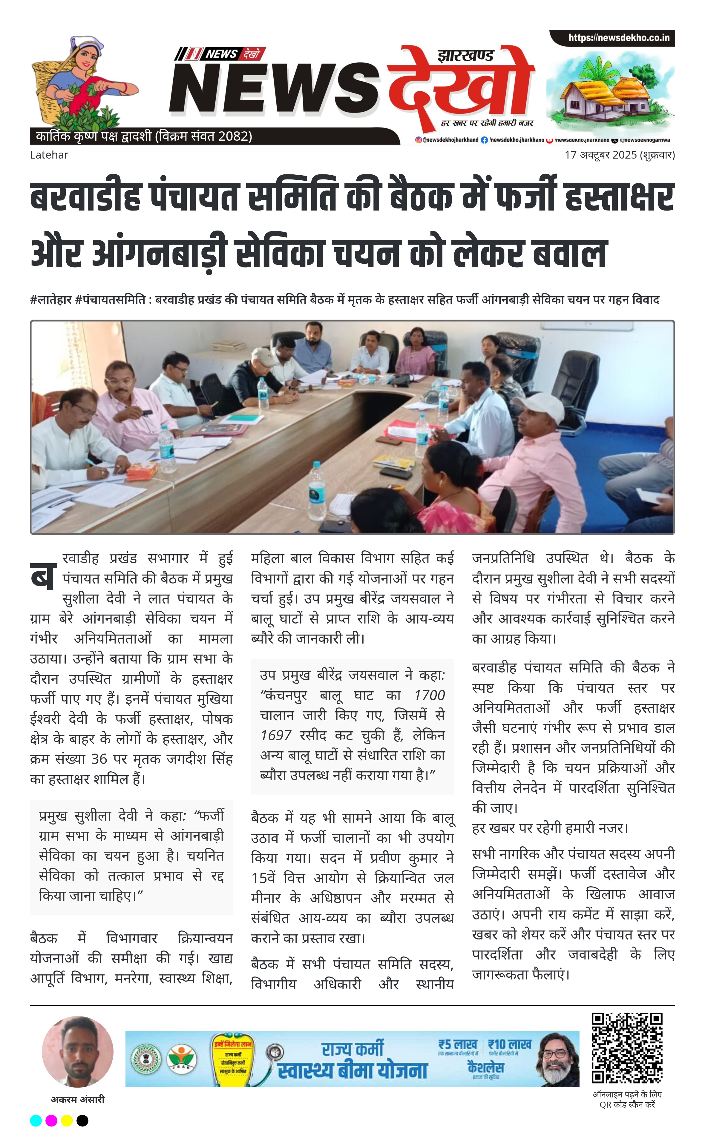 #लातेहार #पंचायतसमिति : बरवाडीह प्रखंड की पंचायत समिति बैठक में मृतक के हस्ताक्षर सहित फर्जी आंगनबाड़ी सेविका चयन पर गहन विवाद