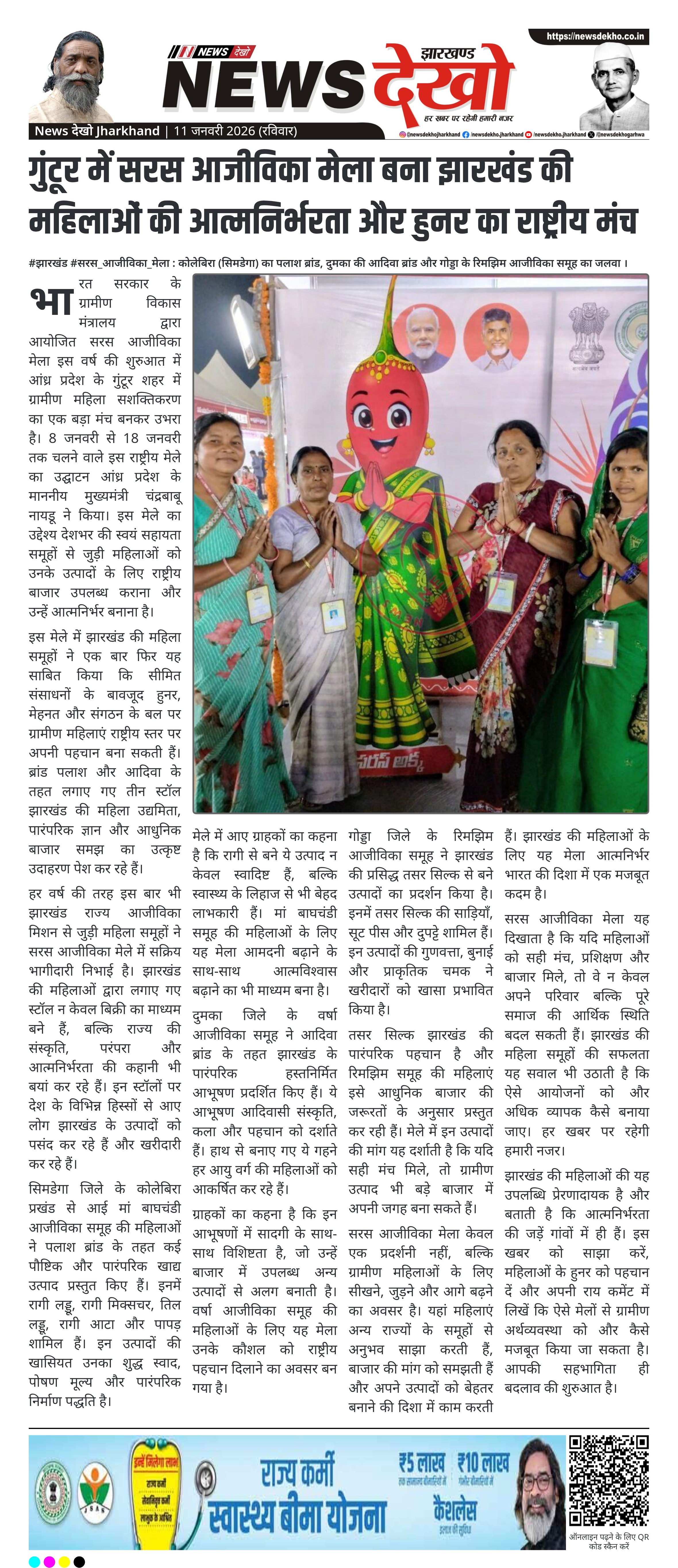भारत सरकार के ग्रामीण विकास मंत्रालय द्वारा आयोजित सरस आजीविका मेला आंध्र प्रदेश के गुंटूर शहर में 8 से 18 जनवरी तक आयोजित हो रहा है। इस मेले में झारखंड की स्वयं सहायता समूहों से जुड़ी महिलाओं ने अपने पारंपरिक और आधुनिक उत्पादों के माध्यम से आत्मनिर्भरता का उदाहरण प्रस्तुत किया है। ब्रांड पलाश और आदिवा के तहत लगाए गए स्टॉलों ने राष्ट्रीय स्तर पर झारखंड की महिला उद्यमिता को पहचान दिलाई है। यह आयोजन ग्रामीण महिलाओं को बाजार, सम्मान और आर्थिक सशक्तिकरण से जोड़ने की दिशा में महत्वपूर्ण कदम माना जा रहा है।