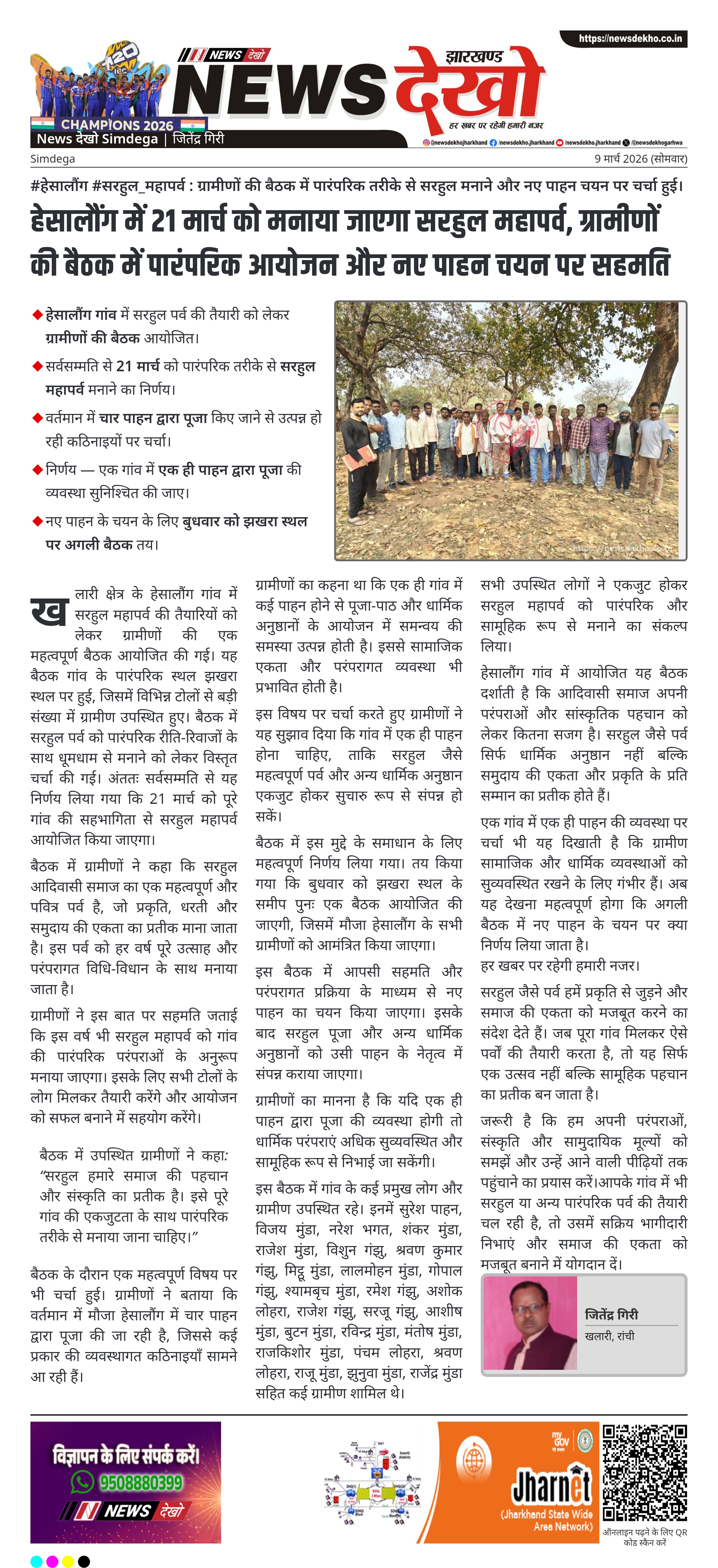 • हेसालौंग गांव में सरहुल पर्व की तैयारी को लेकर ग्रामीणों की बैठक आयोजित।