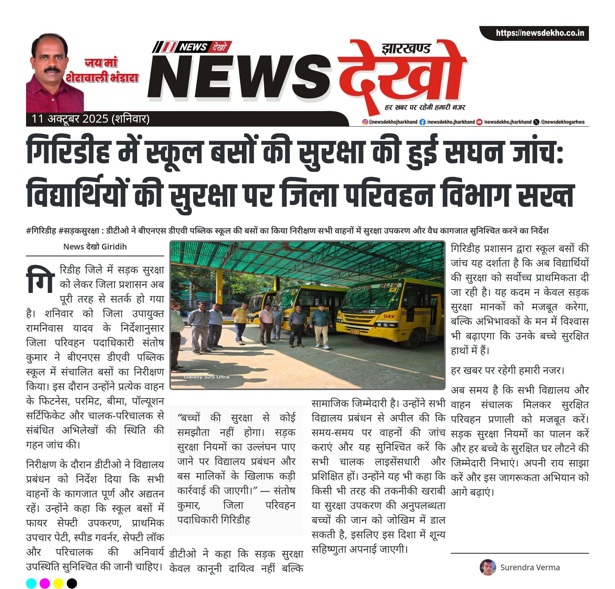 #गिरिडीह #सड़कसुरक्षा : डीटीओ ने बीएनएस डीएवी पब्लिक स्कूल की बसों का किया निरीक्षण सभी वाहनों में सुरक्षा उपकरण और वैध कागजात सुनिश्चित करने का निर्देश