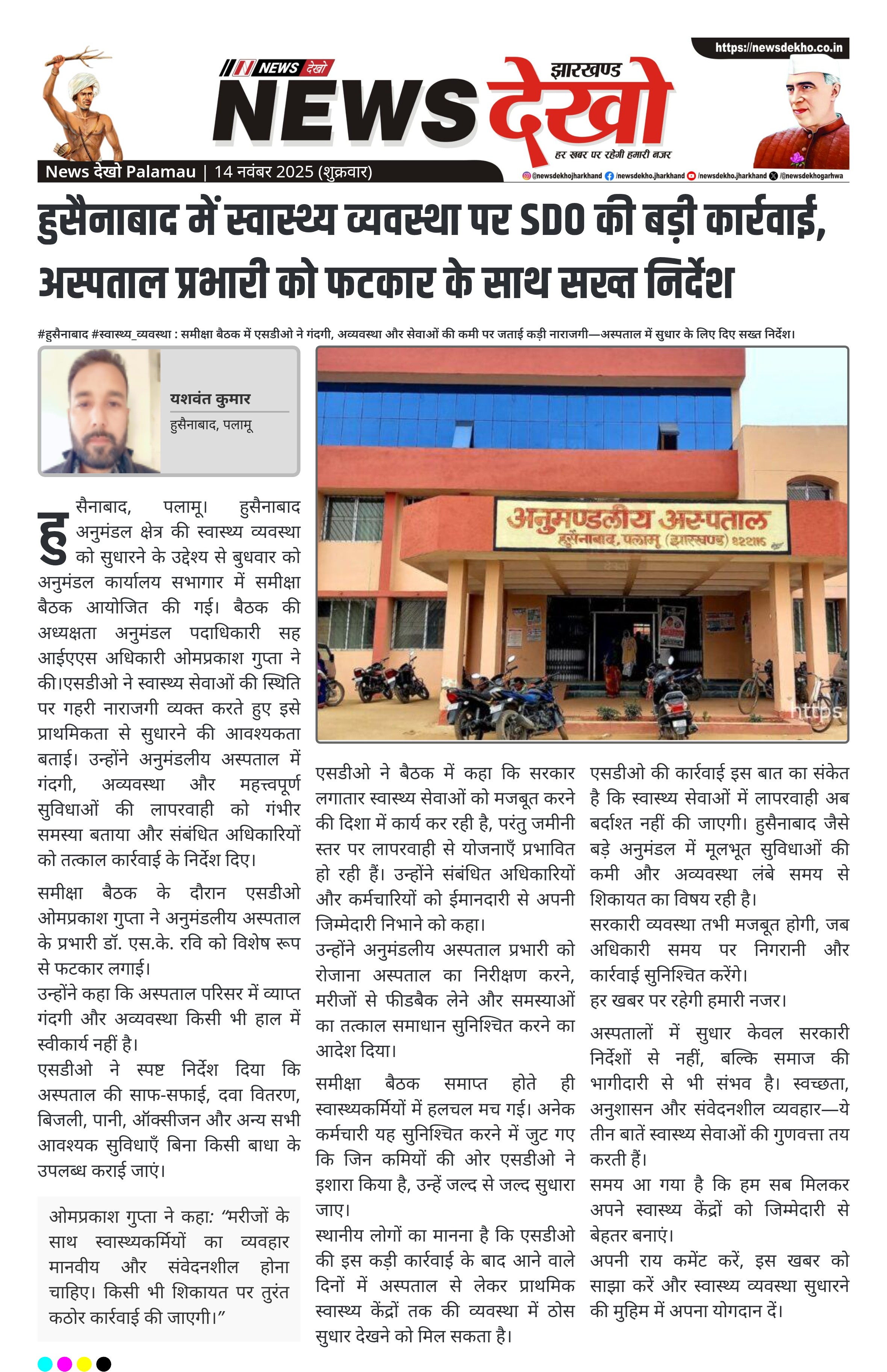 एसडीओ की कार्रवाई इस बात का संकेत है कि स्वास्थ्य सेवाओं में लापरवाही अब बर्दाश्त नहीं की जाएगी। हुसैनाबाद जैसे बड़े अनुमंडल में मूलभूत सुविधाओं की कमी और अव्यवस्था लंबे समय से शिकायत का विषय रही है।