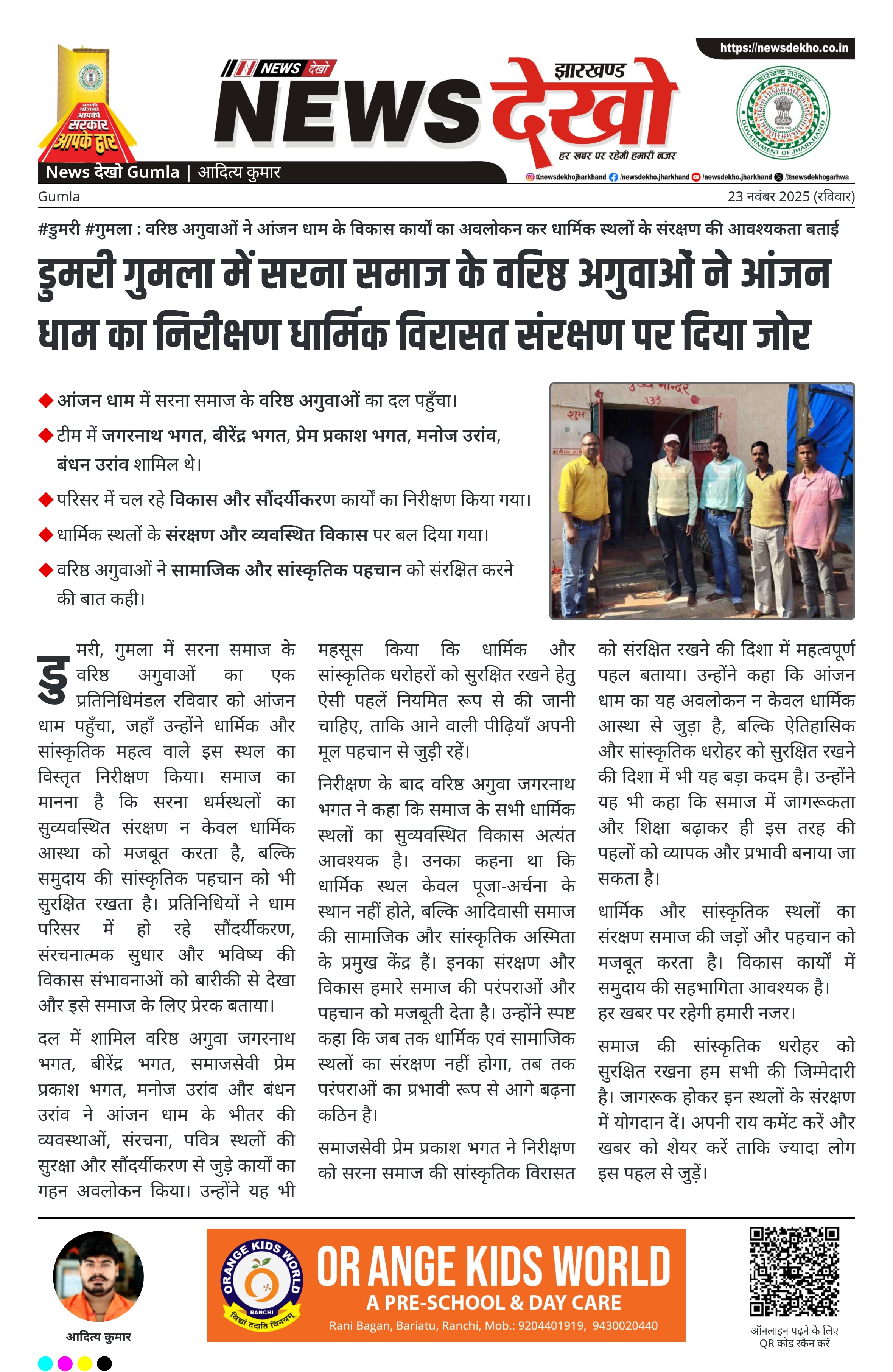 • आंजन धाम में सरना समाज के वरिष्ठ अगुवाओं का दल पहुँचा।