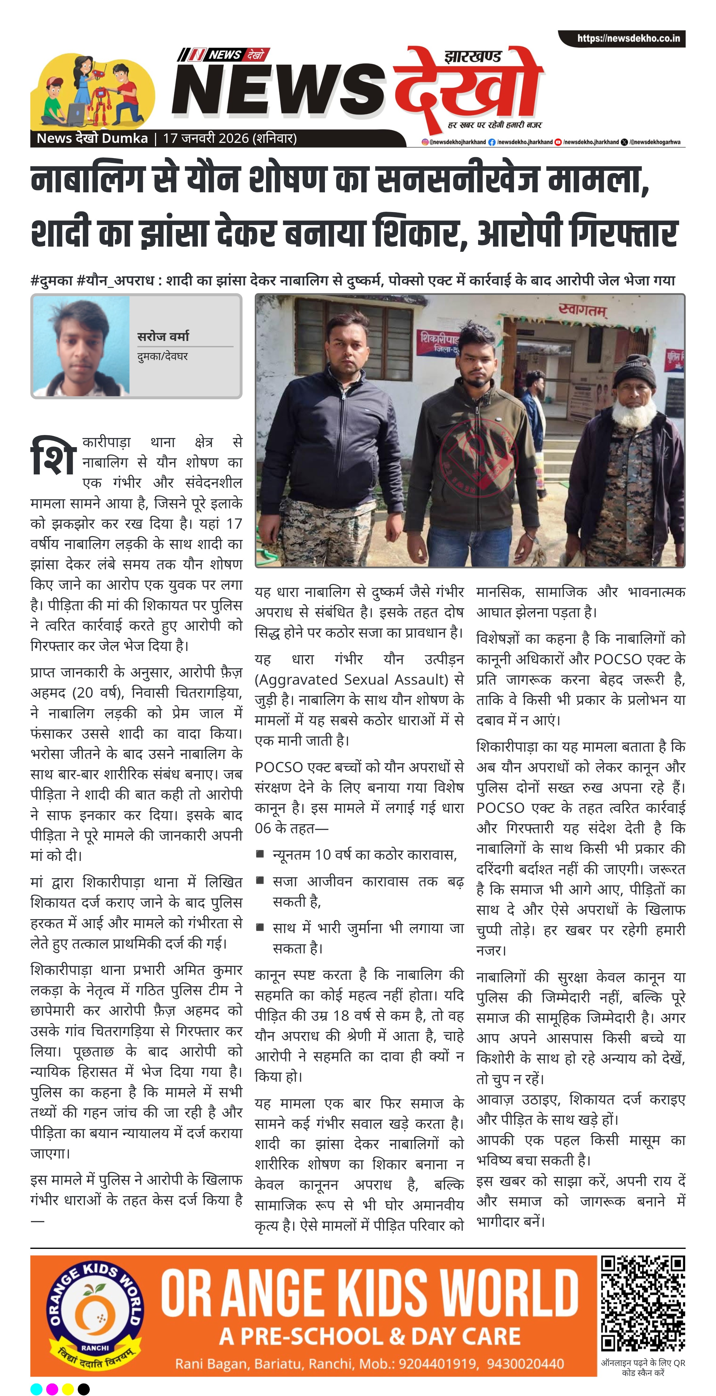 #दुमका #यौन_अपराध : शादी का झांसा देकर नाबालिग से दुष्कर्म, पोक्सो एक्ट में कार्रवाई के बाद आरोपी जेल भेजा गया