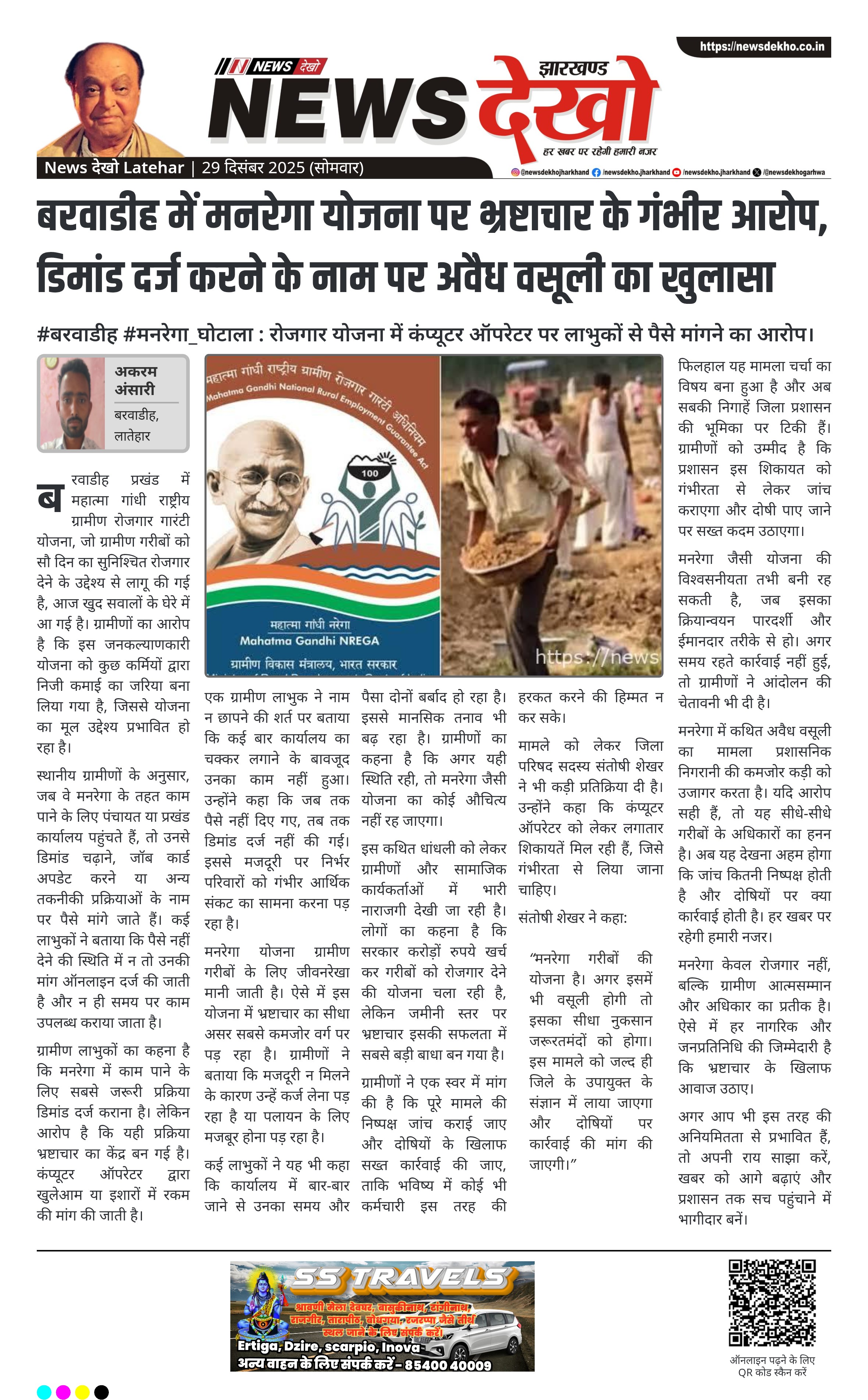 मनरेगा केवल रोजगार नहीं, बल्कि ग्रामीण आत्मसम्मान और अधिकार का प्रतीक है। ऐसे में हर नागरिक और जनप्रतिनिधि की जिम्मेदारी है कि भ्रष्टाचार के खिलाफ आवाज उठाए।