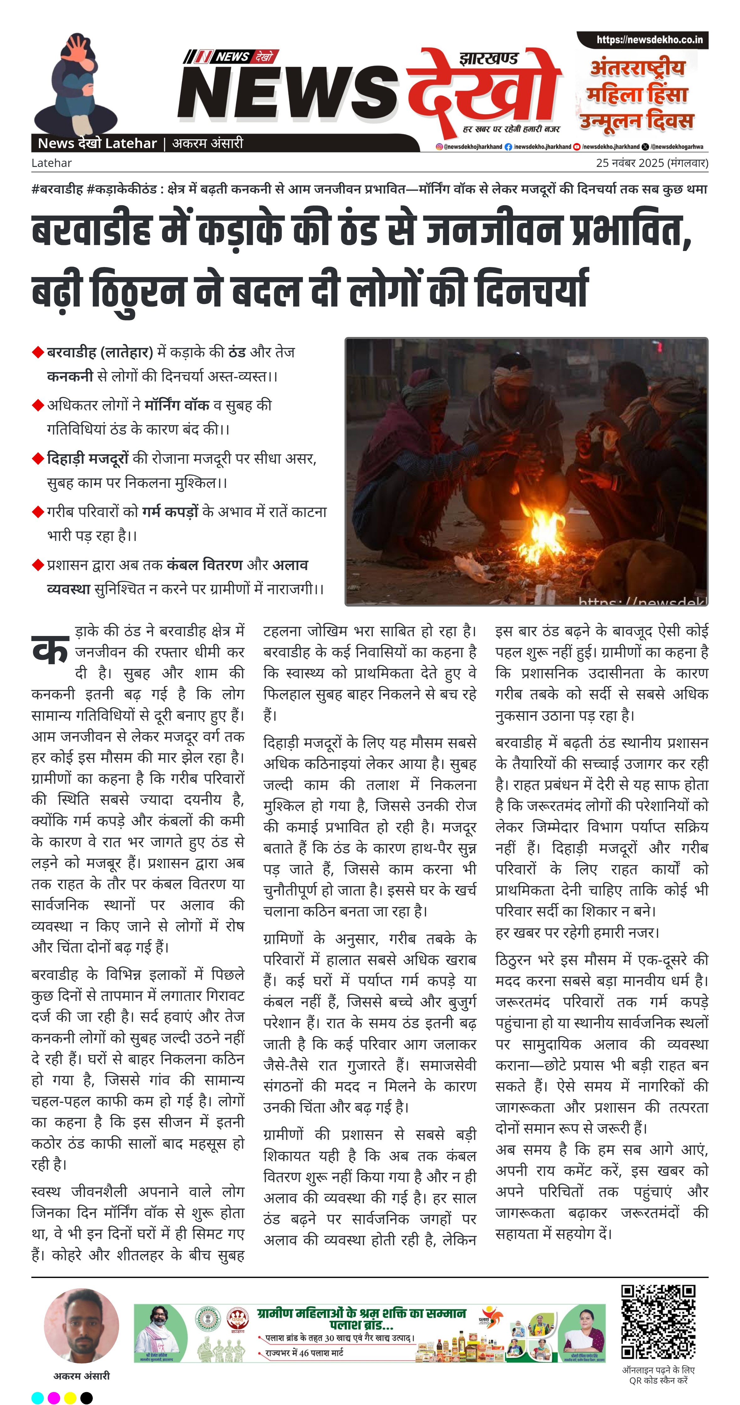 बरवाडीह में बढ़ती ठंड स्थानीय प्रशासन के तैयारियों की सच्चाई उजागर कर रही है। राहत प्रबंधन में देरी से यह साफ होता है कि जरूरतमंद लोगों की परेशानियों को लेकर जिम्मेदार विभाग पर्याप्त सक्रिय नहीं हैं। दिहाड़ी मजदूरों और गरीब परिवारों के लिए राहत कार्यों को प्राथमिकता देनी चाहिए ताकि कोई भी परिवार सर्दी का शिकार न बने।