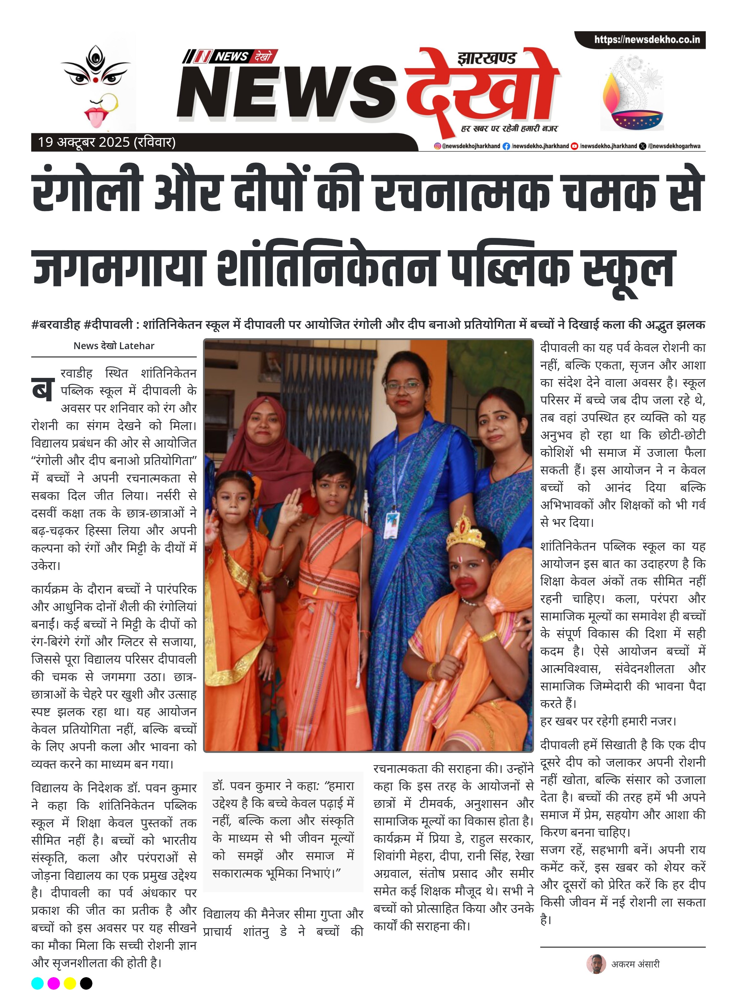 - शांतिनिकेतन पब्लिक स्कूल, बरवाडीह में “रंगोली और दीप बनाओ प्रतियोगिता” का आयोजन किया गया।